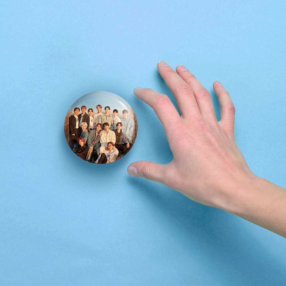 آینه های جیبی گروه سونتین Seventeen خندالو دایره ای به قطر 7.5 سانتی متر می باشد که نه خیلی بزرگ و غیر قابل استفاده در کیف آرایشی ست و نه خیلی کوچک که تصویر خاصی در آن مشاهده نشود. سایزی استاندارد و کارآمد دارد و مناسب قرار گیری در کیف لوازم آرایش و کیف های کوچک دستی نیز هست.