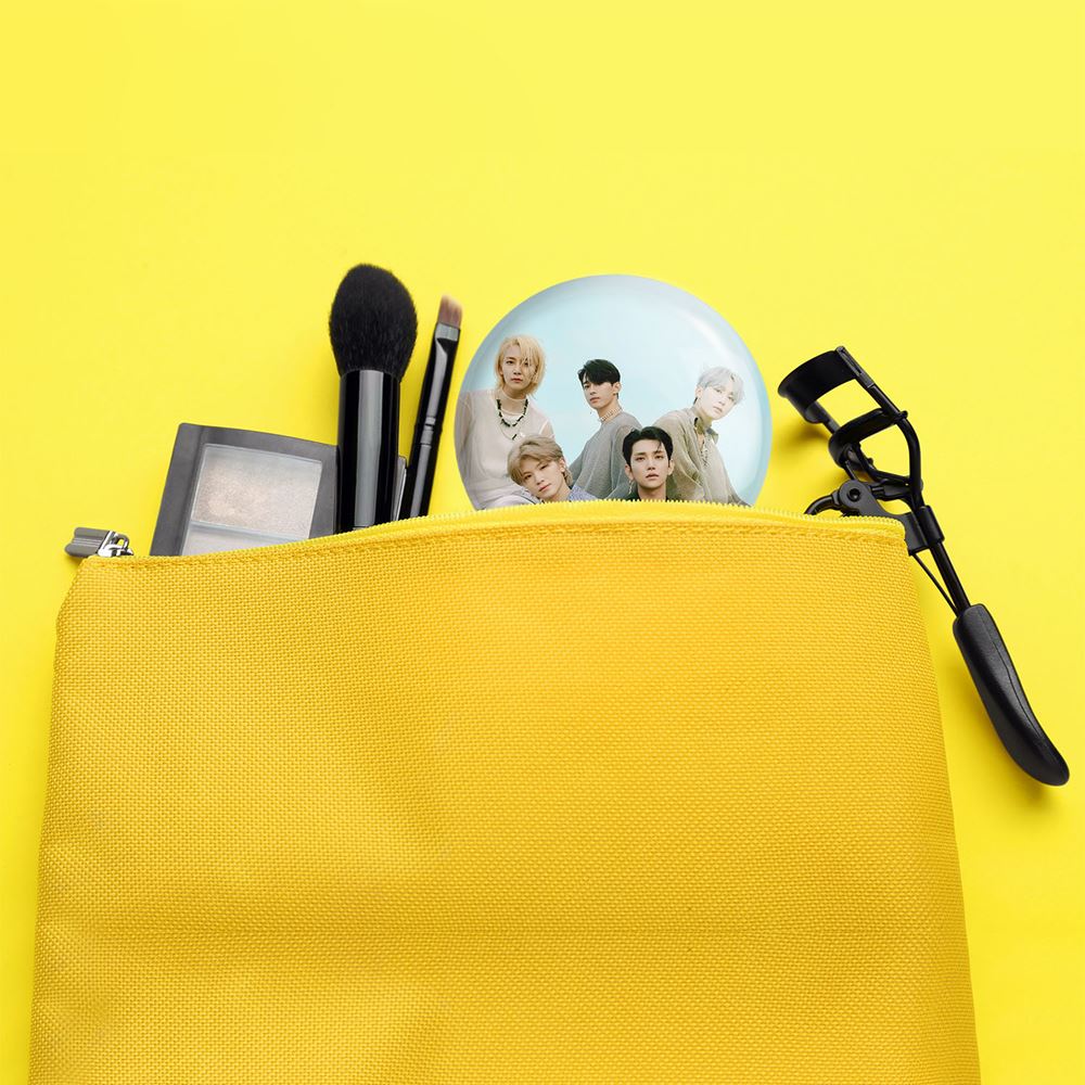 آینه های جیبی گروه سونتین Seventeen خندالو دایره ای به قطر 7.5 سانتی متر می باشد که نه خیلی بزرگ و غیر قابل استفاده در کیف آرایشی ست و نه خیلی کوچک که تصویر خاصی در آن مشاهده نشود. سایزی استاندارد و کارآمد دارد و مناسب قرار گیری در کیف لوازم آرایش و کیف های کوچک دستی نیز هست.
