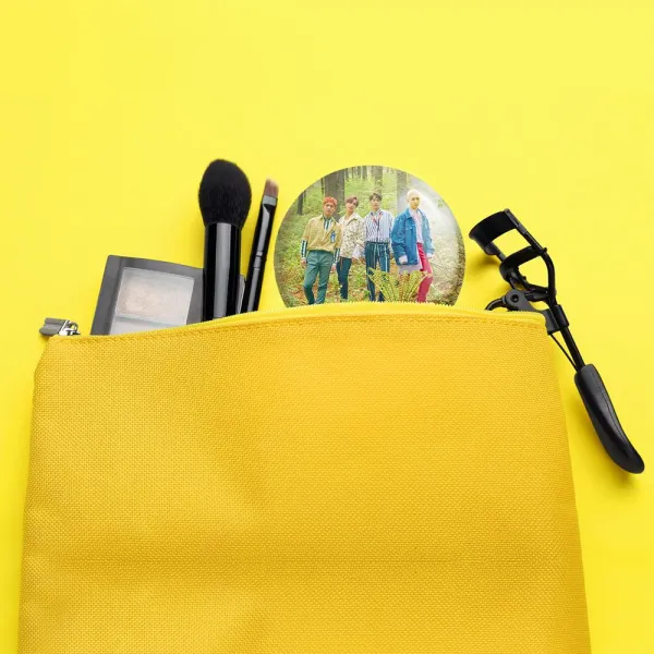 آینه های جیبی گروه شاینی Shinee خندالو دایره ای به قطر 7.5 سانتی متر می باشد که نه خیلی بزرگ و غیر قابل استفاده در کیف آرایشی ست و نه خیلی کوچک که تصویر خاصی در آن مشاهده نشود. سایزی استاندارد و کارآمد دارد و مناسب قرار گیری در کیف لوازم آرایش و کیف های کوچک دستی نیز هست.