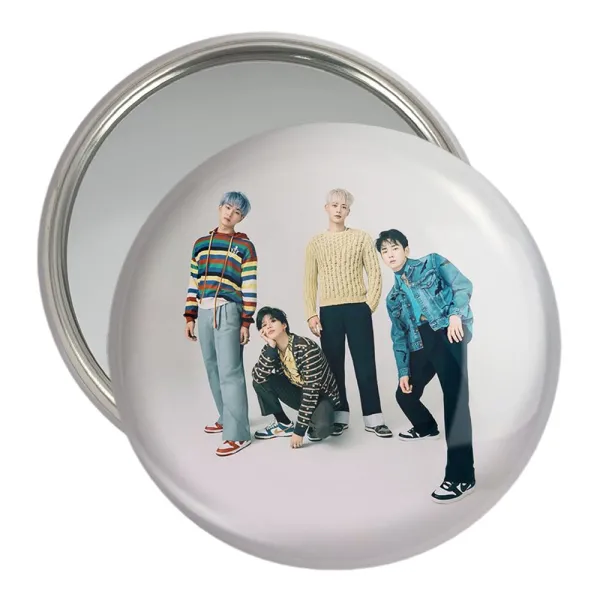 آینه های جیبی گروه شاینی Shinee خندالو دایره ای به قطر 7.5 سانتی متر می باشد که نه خیلی بزرگ و غیر قابل استفاده در کیف آرایشی ست و نه خیلی کوچک که تصویر خاصی در آن مشاهده نشود. سایزی استاندارد و کارآمد دارد و مناسب قرار گیری در کیف لوازم آرایش و کیف های کوچک دستی نیز هست. بدنه ی آینه جیبی گروه شاینی Shinee در قسمتی که آینه را در بر گرفته فلزی بوده و ظاهر براق و بسیار زیبایی دارد. چاپ طرح در پشت آینه بوسیله چاپگرهای دیجیتال شش رنگ با شفافیت و کیفیتی مثال زدنی انجام گرفته و با روکش لمینت حرارتی پوشیده شده که در مقابل آسیب و خط و خش مقاوم بوده و کیفیت بالایی دارد. آینه های جیبی گروه شاینی Shinee خندالو با تنوع طرحی بسیار بالا، سلیقه هر نوع مخاطبی را تامین میکند.