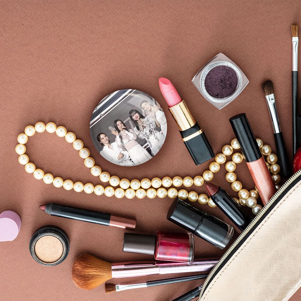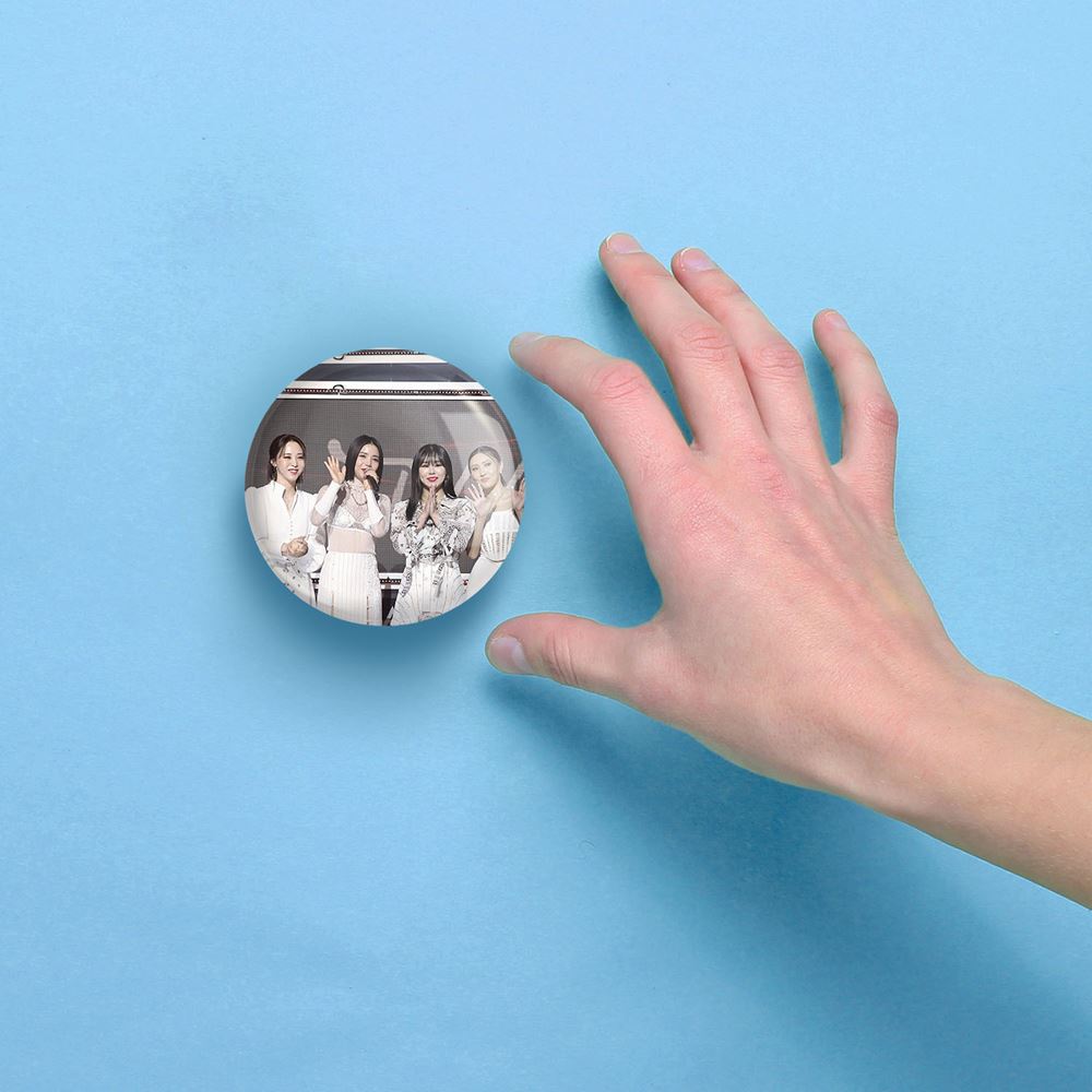 آینه های جیبی گروه مامامو Mamamoo خندالو دایره ای به قطر 7.5 سانتی متر می باشد که نه خیلی بزرگ و غیر قابل استفاده در کیف آرایشی ست و نه خیلی کوچک که تصویر خاصی در آن مشاهده نشود. سایزی استاندارد و کارآمد دارد و مناسب قرار گیری در کیف لوازم آرایش و کیف های کوچک دستی نیز هست. بدنه ی آینه جیبی گروه مامامو Mamamoo در قسمتی که آینه را در بر گرفته فلزی بوده و ظاهر براق و بسیار زیبایی دارد. چاپ طرح در پشت آینه بوسیله چاپگرهای دیجیتال شش رنگ با شفافیت و کیفیتی مثال زدنی انجام گرفته و با روکش لمینت حرارتی پوشیده شده که در مقابل آسیب و خط و خش مقاوم بوده و کیفیت بالایی دارد. آینه های جیبی گروه مامامو Mamamoo خندالو با تنوع طرحی بسیار بالا، سلیقه هر نوع مخاطبی را تامین میکند.