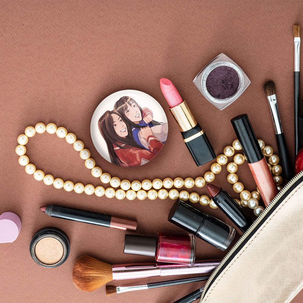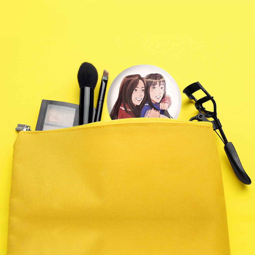آینه های جیبی گروه مامامو Mamamoo خندالو دایره ای به قطر 7.5 سانتی متر می باشد که نه خیلی بزرگ و غیر قابل استفاده در کیف آرایشی ست و نه خیلی کوچک که تصویر خاصی در آن مشاهده نشود. سایزی استاندارد و کارآمد دارد و مناسب قرار گیری در کیف لوازم آرایش و کیف های کوچک دستی نیز هست.
