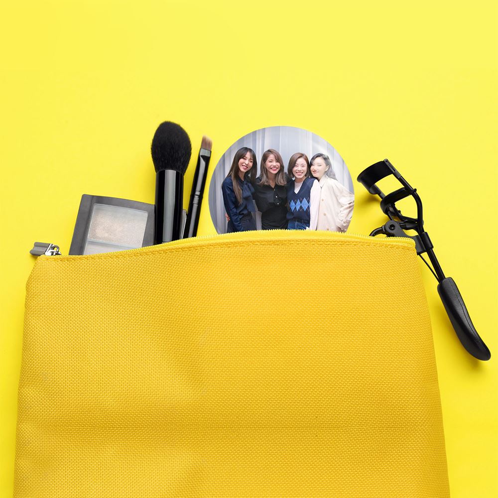 آینه های جیبی گروه مامامو Mamamoo خندالو دایره ای به قطر 7.5 سانتی متر می باشد که نه خیلی بزرگ و غیر قابل استفاده در کیف آرایشی ست و نه خیلی کوچک که تصویر خاصی در آن مشاهده نشود. سایزی استاندارد و کارآمد دارد و مناسب قرار گیری در کیف لوازم آرایش و کیف های کوچک دستی نیز هست. بدنه ی آینه جیبی گروه مامامو Mamamoo در قسمتی که آینه را در بر گرفته فلزی بوده و ظاهر براق و بسیار زیبایی دارد. چاپ طرح در پشت آینه بوسیله چاپگرهای دیجیتال شش رنگ با شفافیت و کیفیتی مثال زدنی انجام گرفته و با روکش لمینت حرارتی پوشیده شده که در مقابل آسیب و خط و خش مقاوم بوده و کیفیت بالایی دارد. آینه های جیبی گروه مامامو Mamamoo خندالو با تنوع طرحی بسیار بالا، سلیقه هر نوع مخاطبی را تامین میکند.