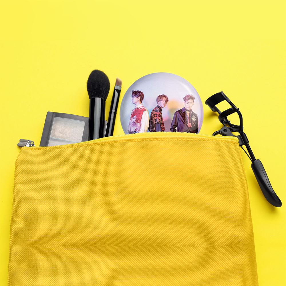 آینه های جیبی گروه گات سون GOT7 خندالو دایره ای به قطر 7.5 سانتی متر می باشد که نه خیلی بزرگ و غیر قابل استفاده در کیف آرایشی ست و نه خیلی کوچک که تصویر خاصی در آن مشاهده نشود. سایزی استاندارد و کارآمد دارد و مناسب قرار گیری در کیف لوازم آرایش و کیف های کوچک دستی نیز هست.