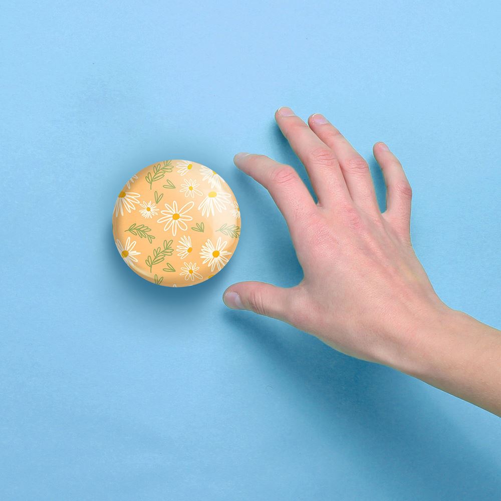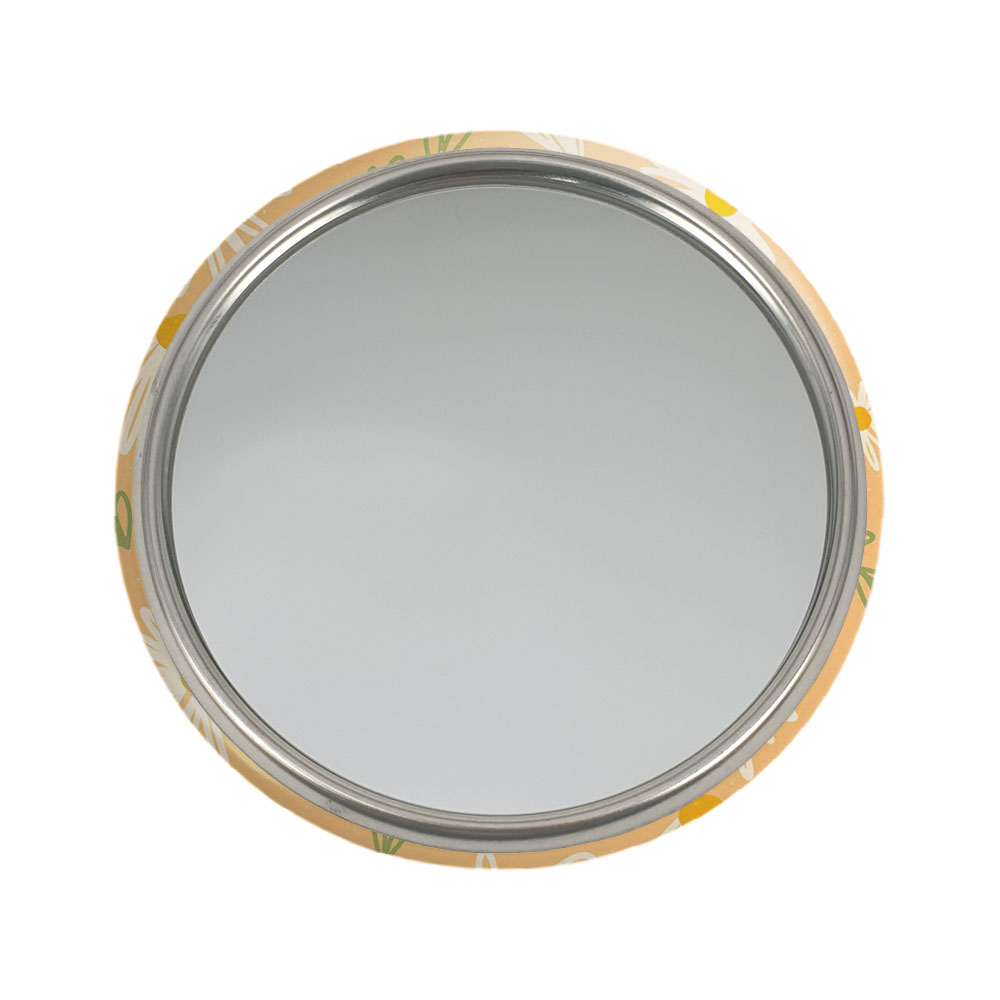 آینه های جیبی گل بابونه خندالو دایره ای به قطر 7.5 سانتی متر می باشد که نه خیلی بزرگ و غیر قابل استفاده در کیف آرایشی ست و نه خیلی کوچک که تصویر خاصی در آن مشاهده نشود. سایزی استاندارد و کارآمد دارد و مناسب قرار گیری در کیف لوازم آرایش و کیف های کوچک دستی نیز هست.