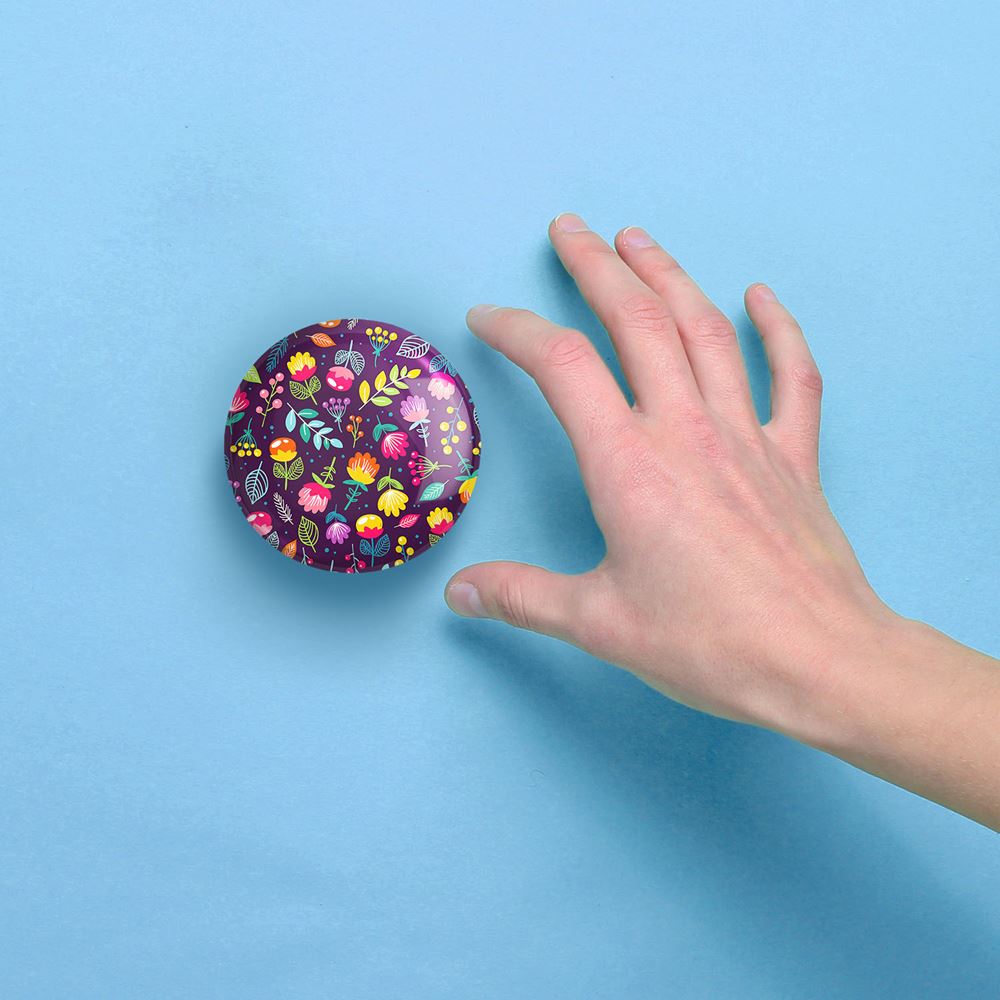 آینه های جیبی گل گلی خندالو دایره ای به قطر 7.5 سانتی متر می باشد که نه خیلی بزرگ و غیر قابل استفاده در کیف آرایشی ست و نه خیلی کوچک که تصویر خاصی در آن مشاهده نشود. سایزی استاندارد و کارآمد دارد و مناسب قرار گیری در کیف لوازم آرایش و کیف های کوچک دستی نیز هست.