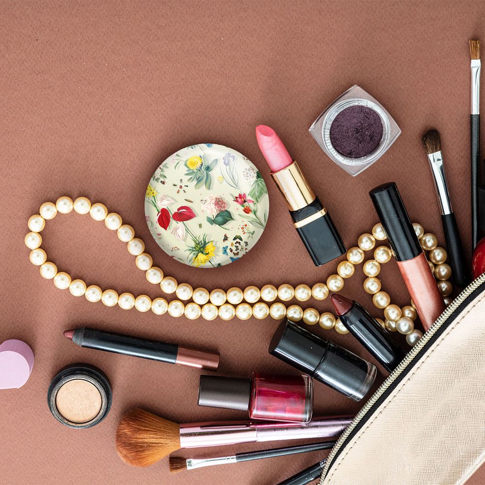 آینه های جیبی گل گلی خندالو دایره ای به قطر 7.5 سانتی متر می باشد که نه خیلی بزرگ و غیر قابل استفاده در کیف آرایشی ست و نه خیلی کوچک که تصویر خاصی در آن مشاهده نشود. سایزی استاندارد و کارآمد دارد و مناسب قرار گیری در کیف لوازم آرایش و کیف های کوچک دستی نیز هست.