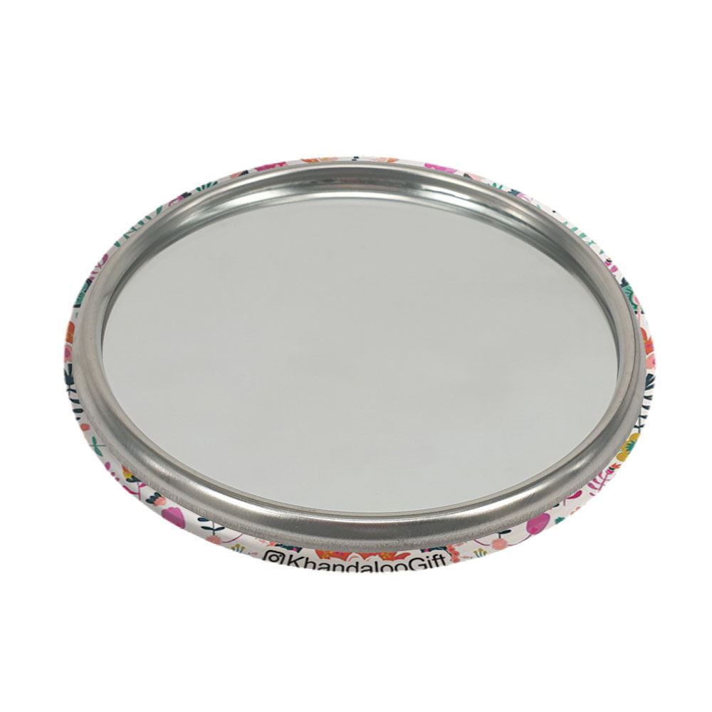 آینه های جیبی گل گلی خندالو دایره ای به قطر 7.5 سانتی متر می باشد که نه خیلی بزرگ و غیر قابل استفاده در کیف آرایشی ست و نه خیلی کوچک که تصویر خاصی در آن مشاهده نشود. سایزی استاندارد و کارآمد دارد و مناسب قرار گیری در کیف لوازم آرایش و کیف های کوچک دستی نیز هست.