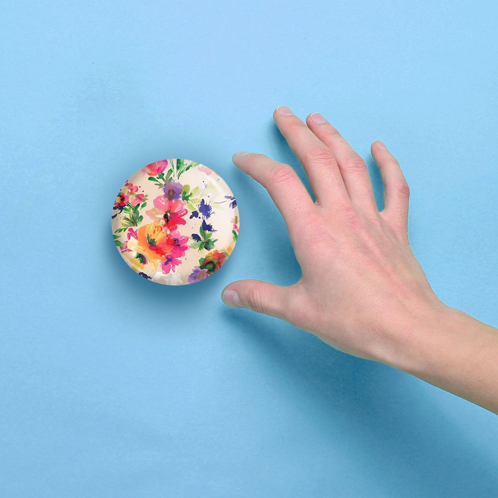 آینه های جیبی گل گلی خندالو دایره ای به قطر 7.5 سانتی متر می باشد که نه خیلی بزرگ و غیر قابل استفاده در کیف آرایشی ست و نه خیلی کوچک که تصویر خاصی در آن مشاهده نشود. سایزی استاندارد و کارآمد دارد و مناسب قرار گیری در کیف لوازم آرایش و کیف های کوچک دستی نیز هست.