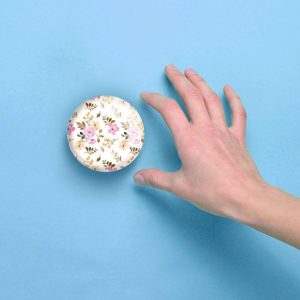 آینه های جیبی گل گلی خندالو دایره ای به قطر 7.5 سانتی متر می باشد که نه خیلی بزرگ و غیر قابل استفاده در کیف آرایشی ست و نه خیلی کوچک که تصویر خاصی در آن مشاهده نشود. سایزی استاندارد و کارآمد دارد و مناسب قرار گیری در کیف لوازم آرایش و کیف های کوچک دستی نیز هست.