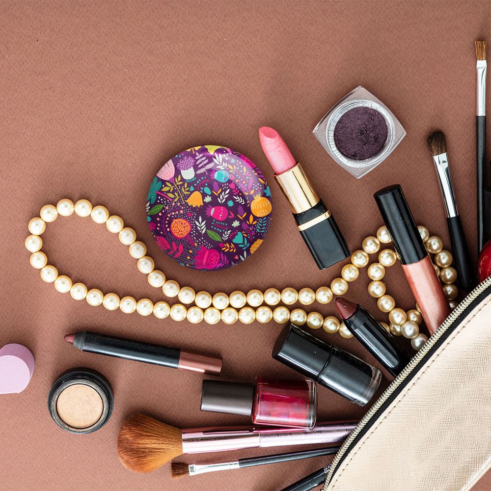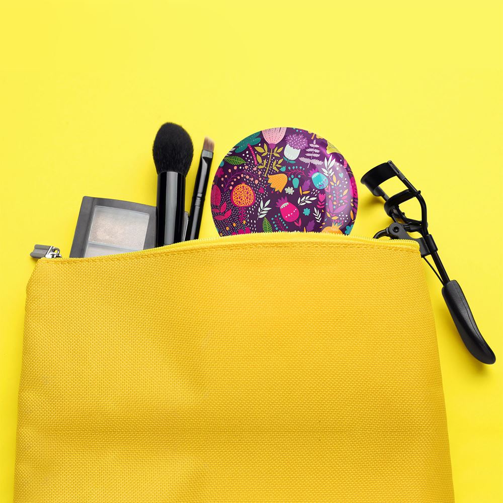 آینه های جیبی گل گلی خندالو دایره ای به قطر 7.5 سانتی متر می باشد که نه خیلی بزرگ و غیر قابل استفاده در کیف آرایشی ست و نه خیلی کوچک که تصویر خاصی در آن مشاهده نشود. سایزی استاندارد و کارآمد دارد و مناسب قرار گیری در کیف لوازم آرایش و کیف های کوچک دستی نیز هست.