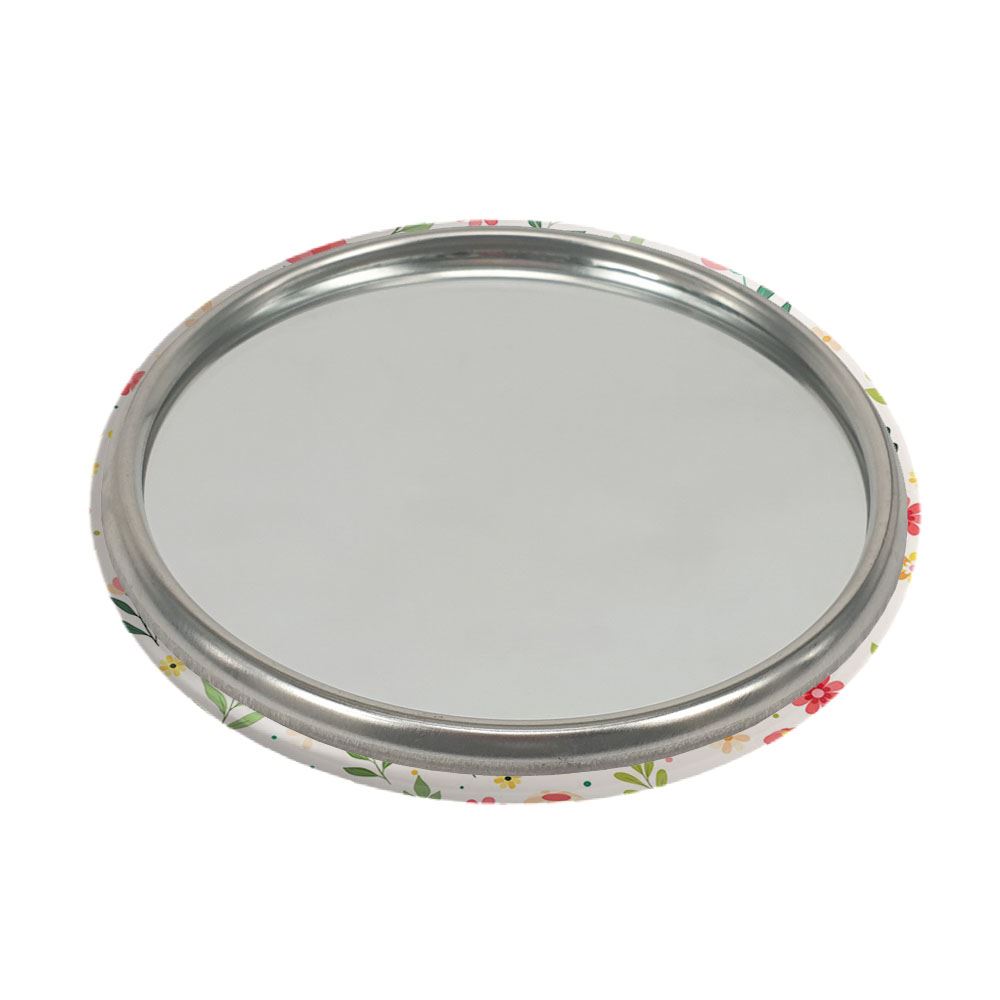 آینه های جیبی گل گلی خندالو دایره ای به قطر 7.5 سانتی متر می باشد که نه خیلی بزرگ و غیر قابل استفاده در کیف آرایشی ست و نه خیلی کوچک که تصویر خاصی در آن مشاهده نشود. سایزی استاندارد و کارآمد دارد و مناسب قرار گیری در کیف لوازم آرایش و کیف های کوچک دستی نیز هست.