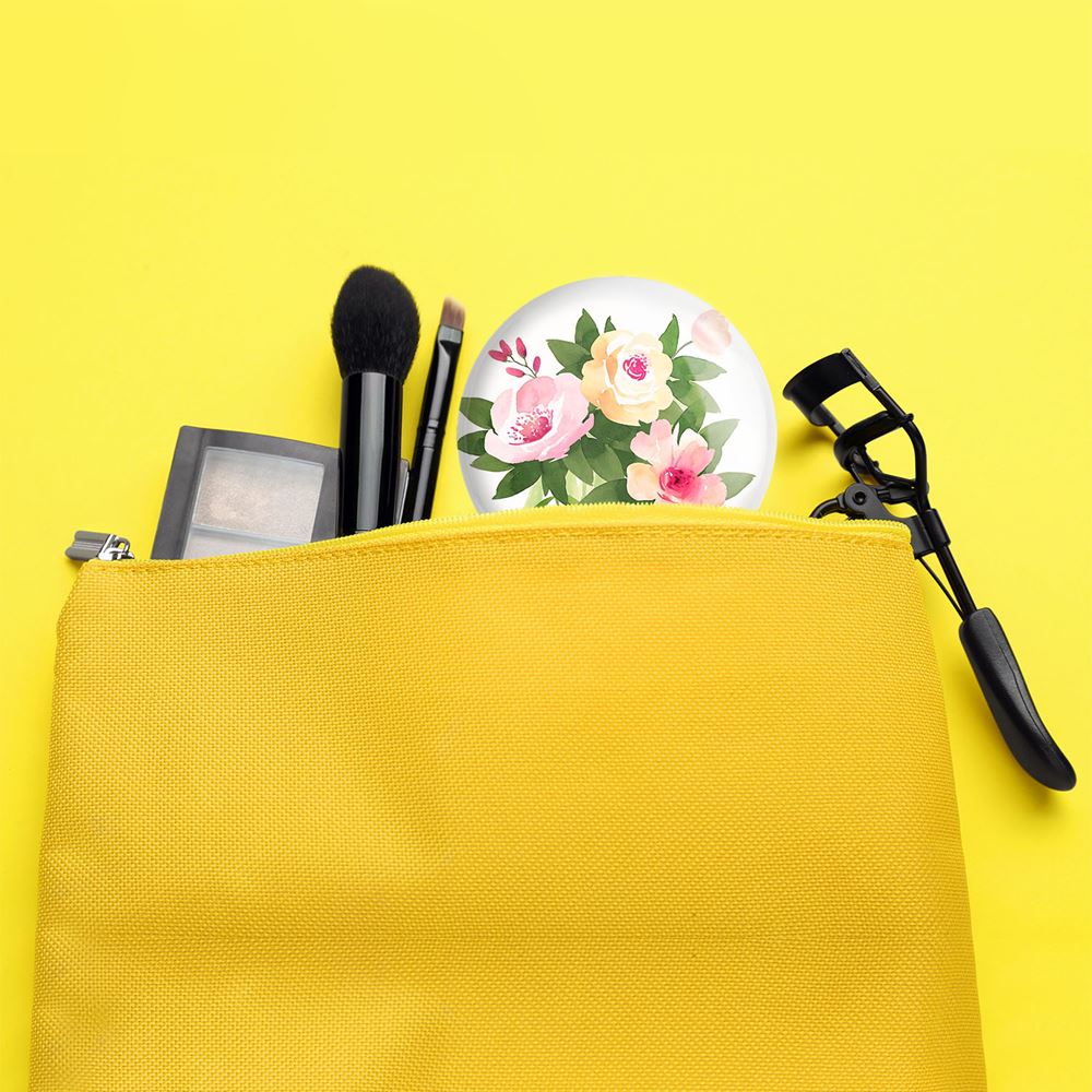 آینه های جیبی گل خندالو دایره ای به قطر 7.5 سانتی متر می باشد که نه خیلی بزرگ و غیر قابل استفاده در کیف آرایشی ست و نه خیلی کوچک که تصویر خاصی در آن مشاهده نشود. سایزی استاندارد و کارآمد دارد و مناسب قرار گیری در کیف لوازم آرایش و کیف های کوچک دستی نیز هست.