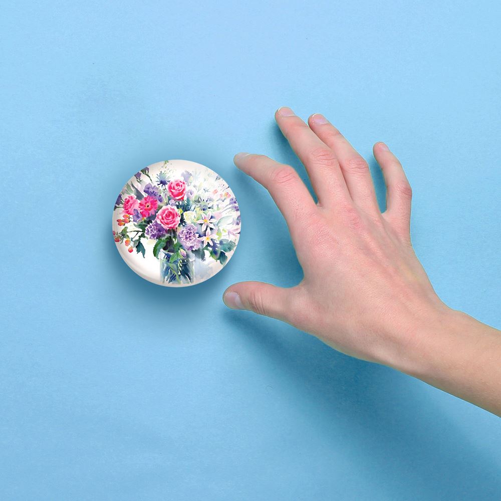 آینه های جیبی گل خندالو دایره ای به قطر 7.5 سانتی متر می باشد که نه خیلی بزرگ و غیر قابل استفاده در کیف آرایشی ست و نه خیلی کوچک که تصویر خاصی در آن مشاهده نشود. سایزی استاندارد و کارآمد دارد و مناسب قرار گیری در کیف لوازم آرایش و کیف های کوچک دستی نیز هست.