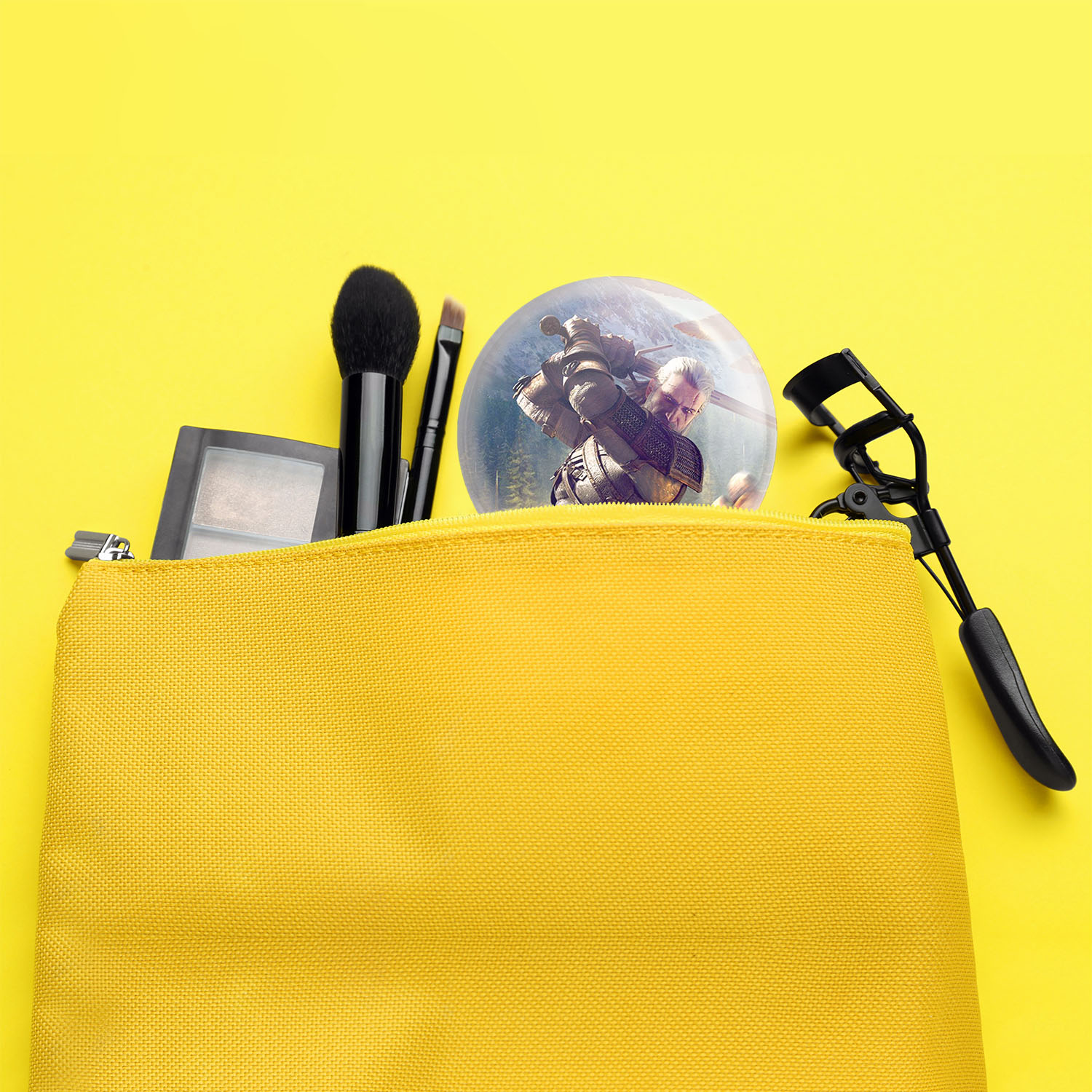 آینه های جیبی گوتی از گرالت ویچر خندالو دایره ای به قطر 7.5 سانتی متر می باشد که نه خیلی بزرگ و غیر قابل استفاده در کیف آرایشی ست و نه خیلی کوچک که تصویر خاصی در آن مشاهده نشود. سایزی استاندارد و کارآمد دارد و مناسب قرار گیری در کیف لوازم آرایش و کیف های کوچک دستی نیز هست.