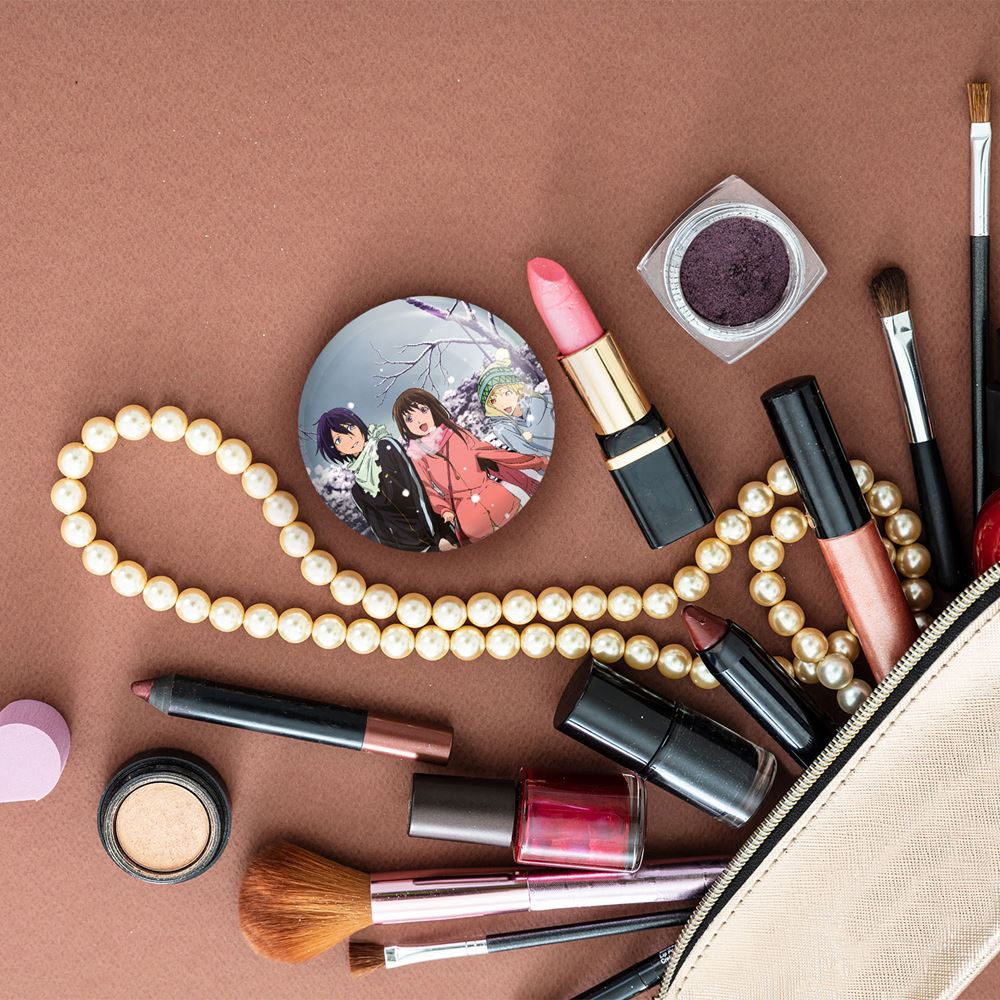 آینه های جیبی یاتو و هیوری و یوکینه انیمه نوراگامی خندالو دایره ای به قطر 7.5 سانتی متر می باشد که نه خیلی بزرگ و غیر قابل استفاده در کیف آرایشی ست و نه خیلی کوچک که تصویر خاصی در آن مشاهده نشود. سایزی استاندارد و کارآمد دارد و مناسب قرار گیری در کیف لوازم آرایش و کیف های کوچک دستی نیز هست.