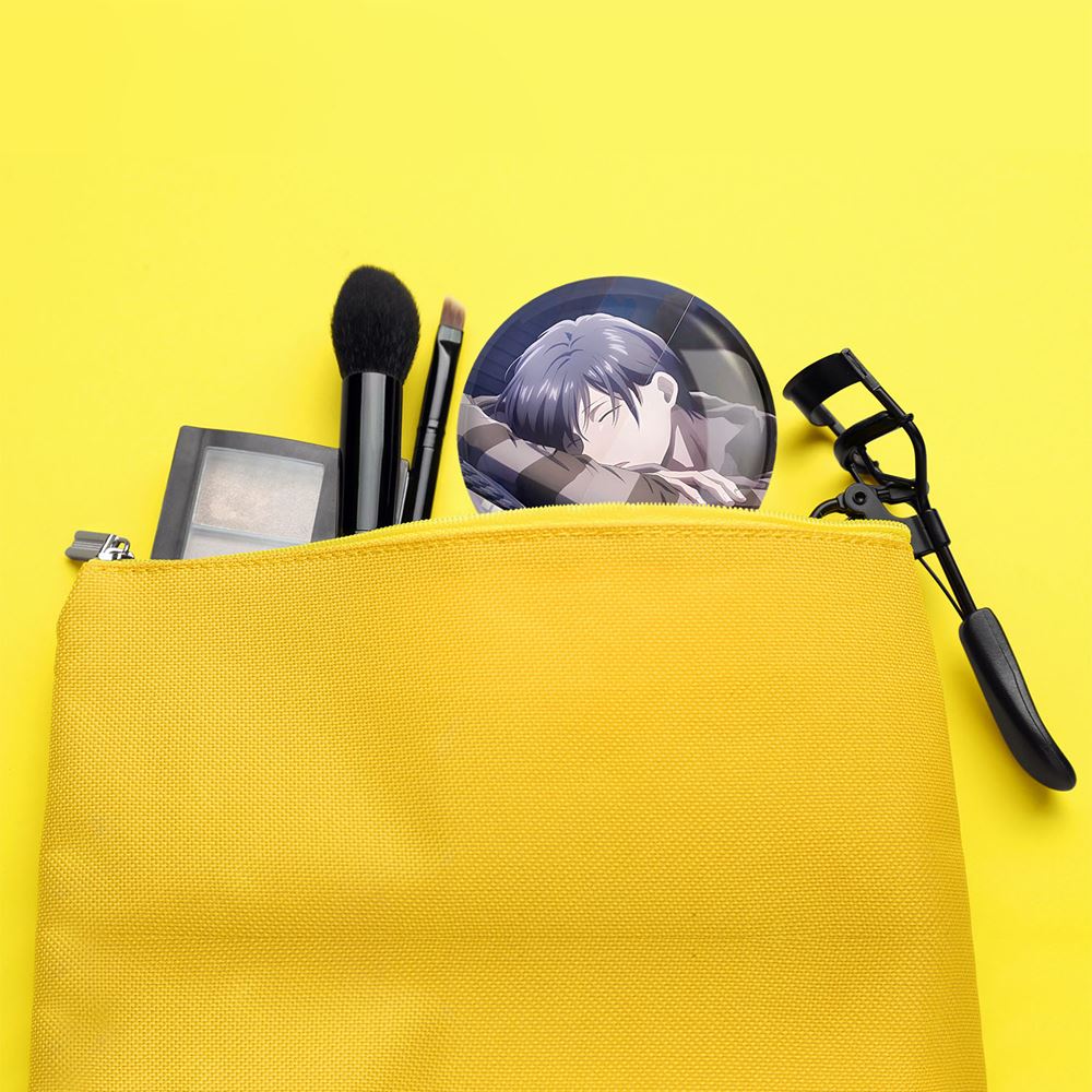 آینه های جیبی یامادا آکیتو انیمه داستان عاشقانه من با یامادا کون در سطح 999 خندالو دایره ای به قطر 7.5 سانتی متر می باشد که نه خیلی بزرگ و غیر قابل استفاده در کیف آرایشی ست و نه خیلی کوچک که تصویر خاصی در آن مشاهده نشود. سایزی استاندارد و کارآمد دارد و مناسب قرار گیری در کیف لوازم آرایش و کیف های کوچک دستی نیز هست. بدنه ی آینه جیبی یامادا آکیتو انیمه داستان عاشقانه من با یامادا کون در سطح 999 در قسمتی که آینه را در بر گرفته فلزی بوده و ظاهر براق و بسیار زیبایی دارد. چاپ طرح در پشت آینه بوسیله چاپگرهای دیجیتال شش رنگ با شفافیت و کیفیتی مثال زدنی انجام گرفته و با روکش لمینت حرارتی پوشیده شده که در مقابل آسیب و خط و خش مقاوم بوده و کیفیت بالایی دارد. آینه های جیبی یامادا آکیتو انیمه داستان عاشقانه من با یامادا کون در سطح 999 خندالو با تنوع طرحی بسیار بالا، سلیقه هر نوع مخاطبی را تامین میکند.