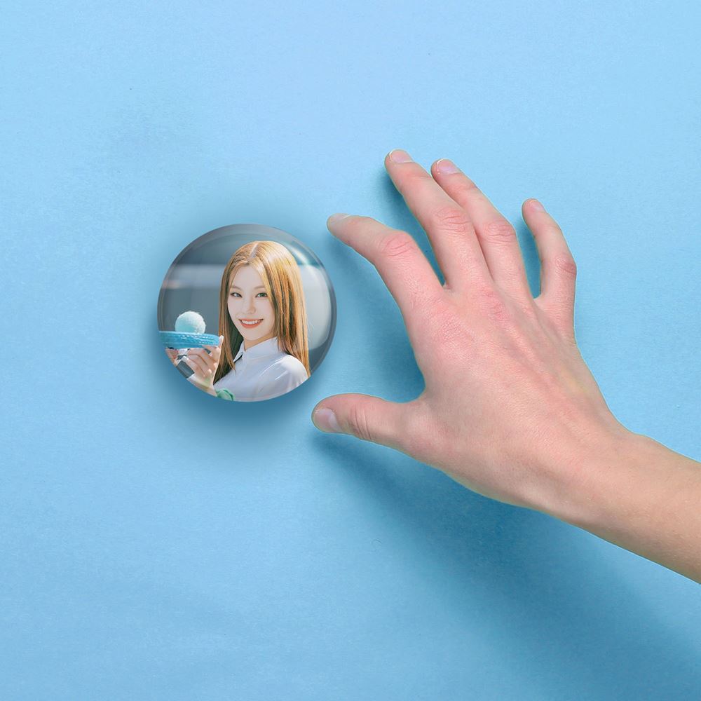 آینه های جیبی یجی گروه ایتزی ITZY خندالو دایره ای به قطر 7.5 سانتی متر می باشد که نه خیلی بزرگ و غیر قابل استفاده در کیف آرایشی ست و نه خیلی کوچک که تصویر خاصی در آن مشاهده نشود. سایزی استاندارد و کارآمد دارد و مناسب قرار گیری در کیف لوازم آرایش و کیف های کوچک دستی نیز هست. بدنه ی آینه جیبی یجی گروه ایتزی ITZY در قسمتی که آینه را در بر گرفته فلزی بوده و ظاهر براق و بسیار زیبایی دارد. چاپ طرح در پشت آینه بوسیله چاپگرهای دیجیتال شش رنگ با شفافیت و کیفیتی مثال زدنی انجام گرفته و با روکش لمینت حرارتی پوشیده شده که در مقابل آسیب و خط و خش مقاوم بوده و کیفیت بالایی دارد. آینه های جیبی یجی گروه ایتزی ITZY خندالو با تنوع طرحی بسیار بالا، سلیقه هر نوع مخاطبی را تامین میکند.