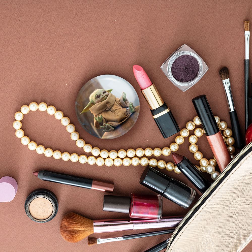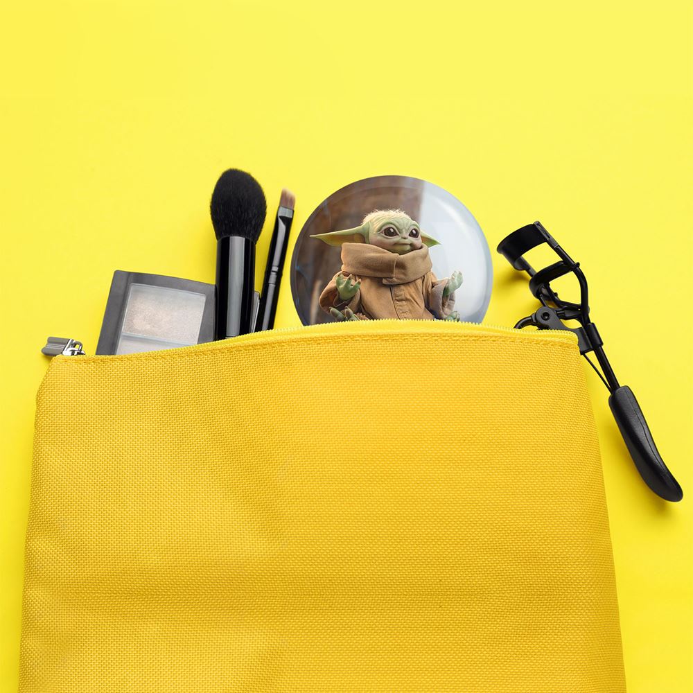 آینه های جیبی یودا سریال جنگ ستارگان خندالو دایره ای به قطر 7.5 سانتی متر می باشد که نه خیلی بزرگ و غیر قابل استفاده در کیف آرایشی ست و نه خیلی کوچک که تصویر خاصی در آن مشاهده نشود. سایزی استاندارد و کارآمد دارد و مناسب قرار گیری در کیف لوازم آرایش و کیف های کوچک دستی نیز هست.
