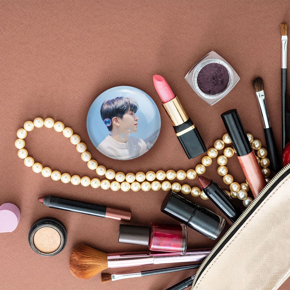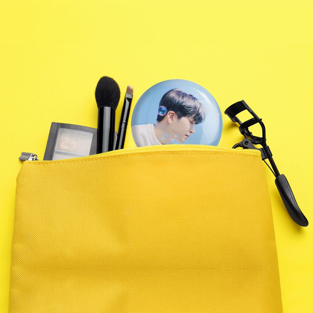 آینه های جیبی یونگجه گروه گات سون GOT7 خندالو دایره ای به قطر 7.5 سانتی متر می باشد که نه خیلی بزرگ و غیر قابل استفاده در کیف آرایشی ست و نه خیلی کوچک که تصویر خاصی در آن مشاهده نشود. سایزی استاندارد و کارآمد دارد و مناسب قرار گیری در کیف لوازم آرایش و کیف های کوچک دستی نیز هست.