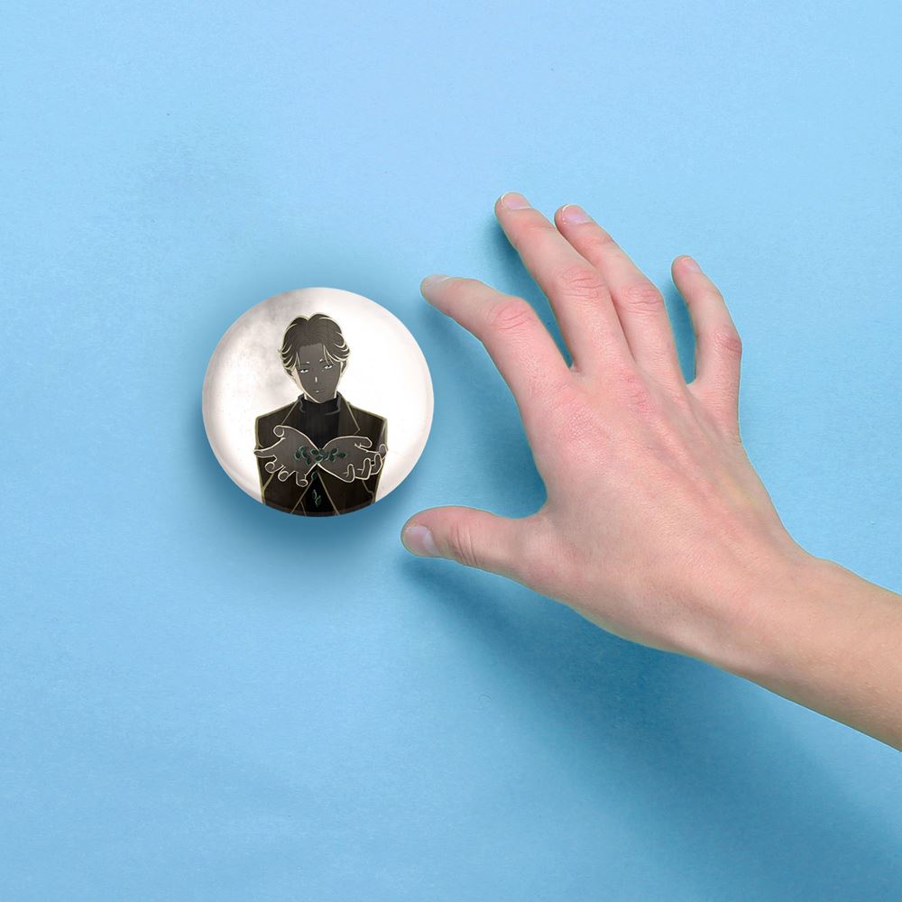 آینه های جیبی یوهان لیبرت انیمه مانستر Monster خندالو دایره ای به قطر 7.5 سانتی متر می باشد که نه خیلی بزرگ و غیر قابل استفاده در کیف آرایشی ست و نه خیلی کوچک که تصویر خاصی در آن مشاهده نشود. سایزی استاندارد و کارآمد دارد و مناسب قرار گیری در کیف لوازم آرایش و کیف های کوچک دستی نیز هست.