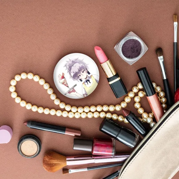 آینه های جیبی یین انیمه تاریک تر از سیاهی Darker Than Black خندالو دایره ای به قطر 7.5 سانتی متر می باشد که نه خیلی بزرگ و غیر قابل استفاده در کیف آرایشی ست و نه خیلی کوچک که تصویر خاصی در آن مشاهده نشود. سایزی استاندارد و کارآمد دارد و مناسب قرار گیری در کیف لوازم آرایش و کیف های کوچک دستی نیز هست.
