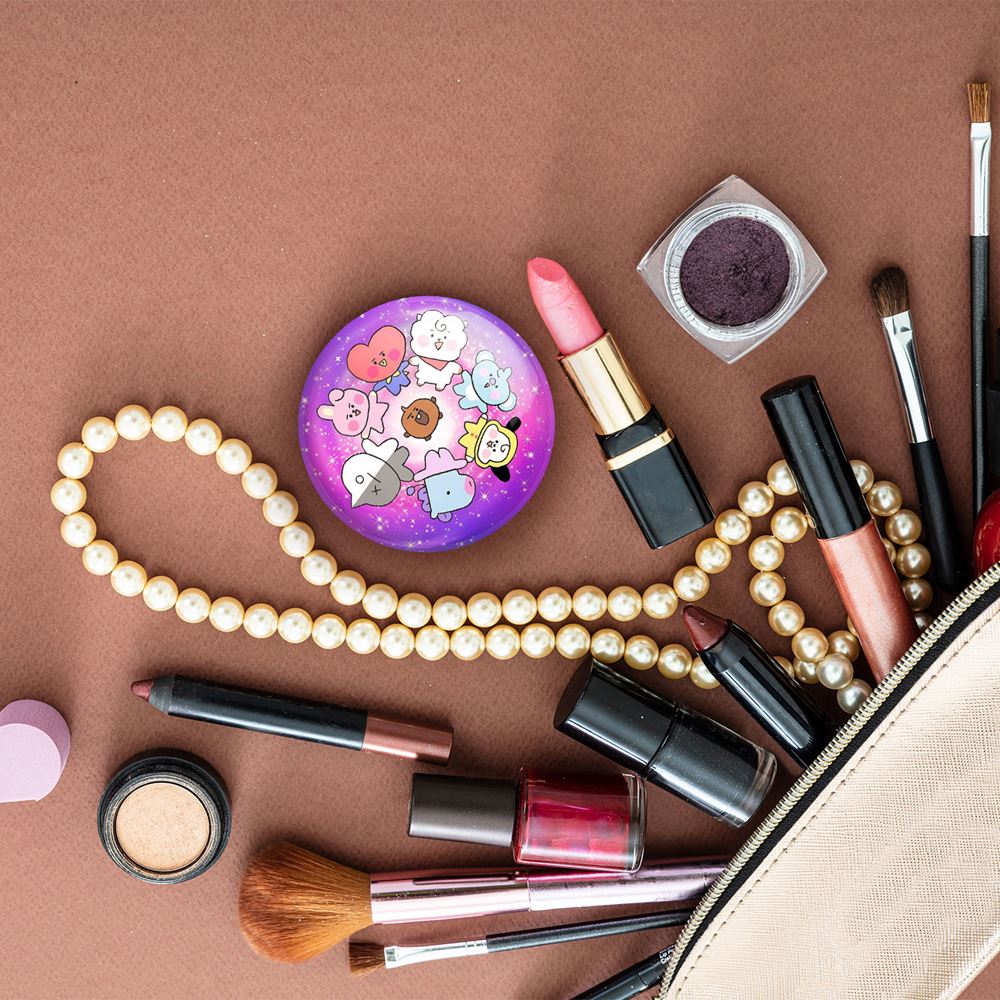 آینه های جیبی BT21 خندالو دایره ای به قطر 7.5 سانتی متر می باشد که نه خیلی بزرگ و غیر قابل استفاده در کیف آرایشی ست و نه خیلی کوچک که تصویر خاصی در آن مشاهده نشود. سایزی استاندارد و کارآمد دارد و مناسب قرار گیری در کیف لوازم آرایش و کیف های کوچک دستی نیز هست.