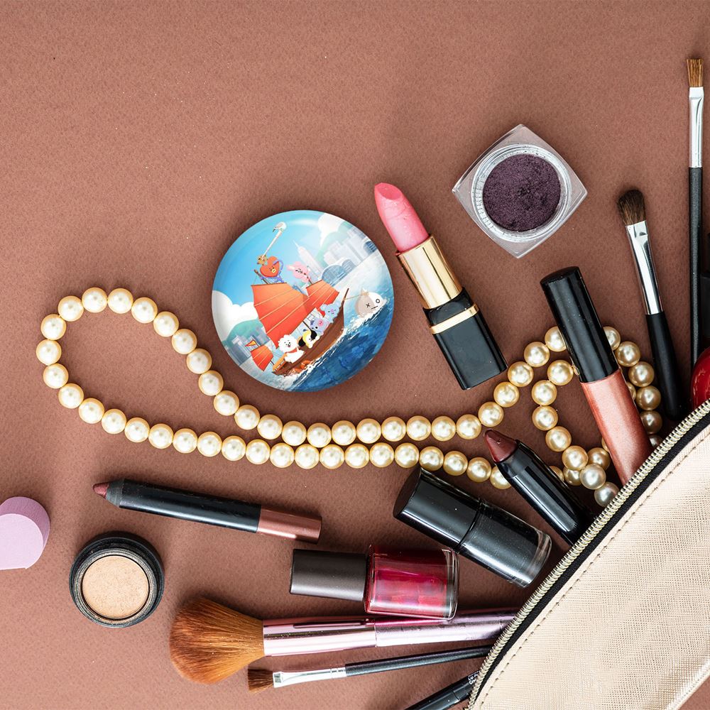 آینه های جیبی BT21 خندالو دایره ای به قطر 7.5 سانتی متر می باشد که نه خیلی بزرگ و غیر قابل استفاده در کیف آرایشی ست و نه خیلی کوچک که تصویر خاصی در آن مشاهده نشود. سایزی استاندارد و کارآمد دارد و مناسب قرار گیری در کیف لوازم آرایش و کیف های کوچک دستی نیز هست.