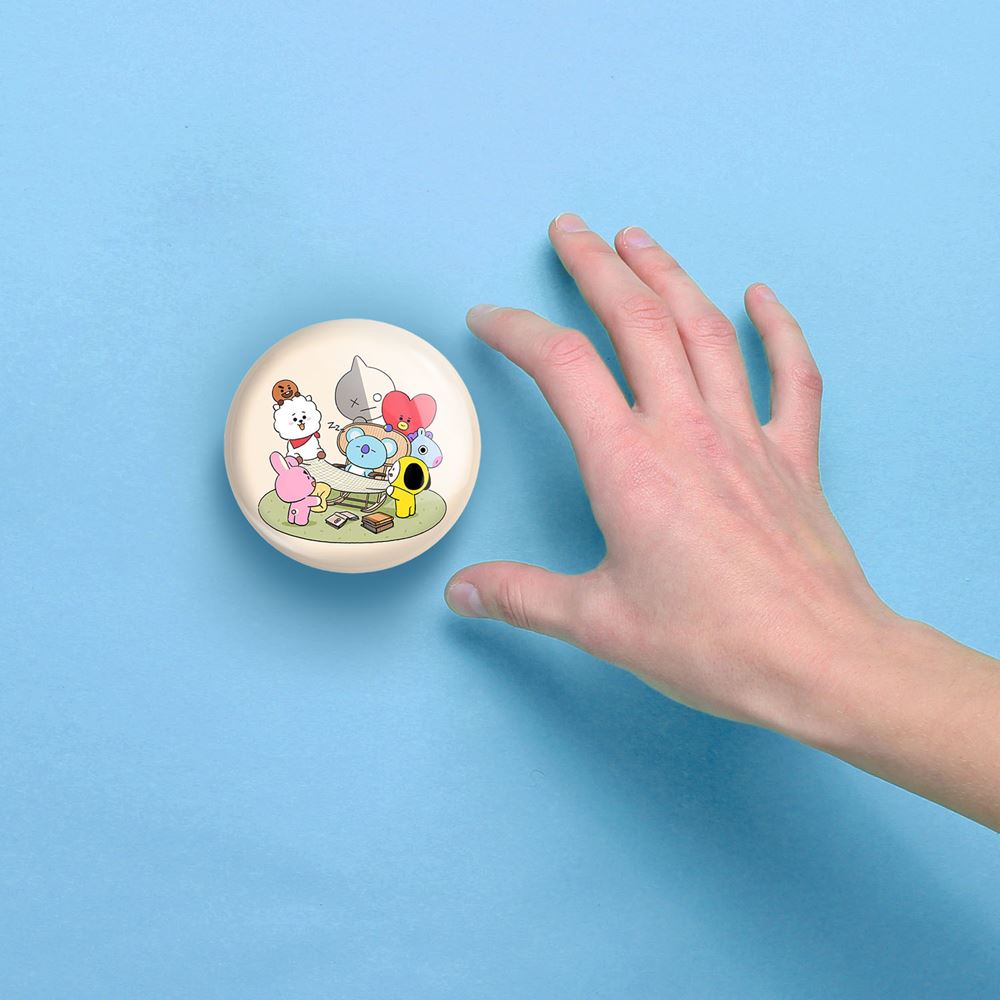 آینه های جیبی BT21 خندالو دایره ای به قطر 7.5 سانتی متر می باشد که نه خیلی بزرگ و غیر قابل استفاده در کیف آرایشی ست و نه خیلی کوچک که تصویر خاصی در آن مشاهده نشود. سایزی استاندارد و کارآمد دارد و مناسب قرار گیری در کیف لوازم آرایش و کیف های کوچک دستی نیز هست.