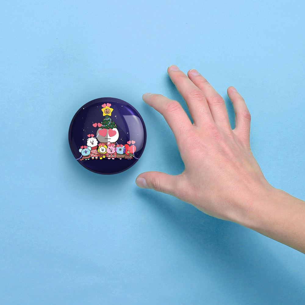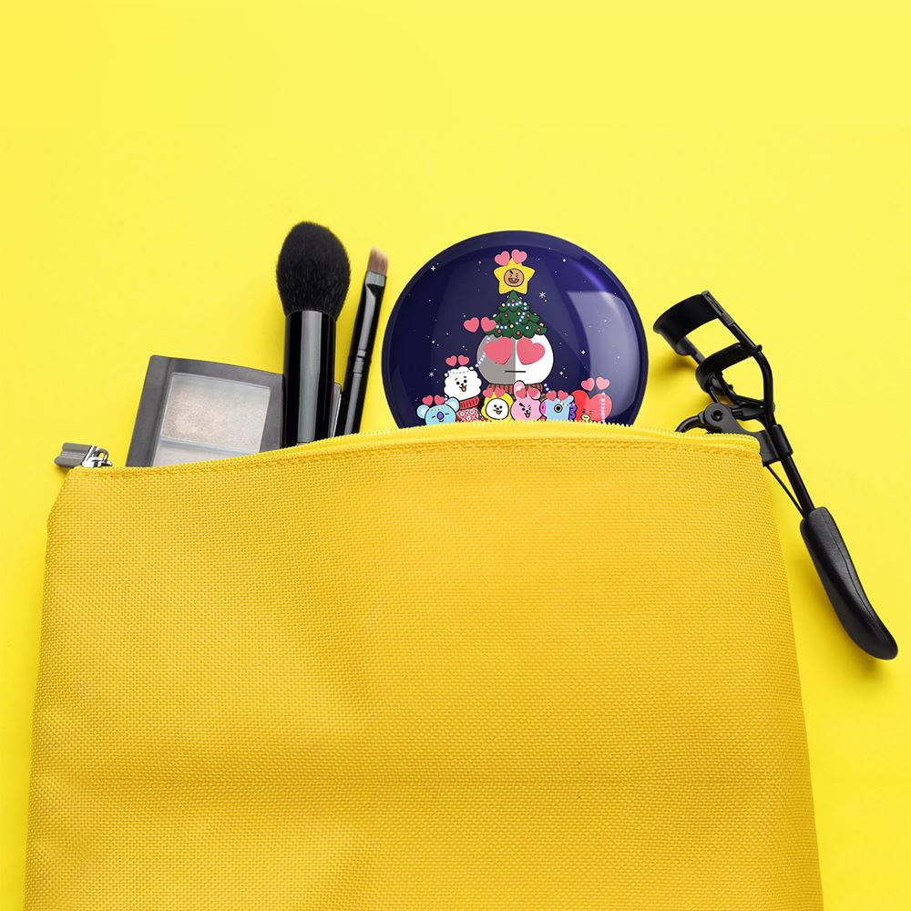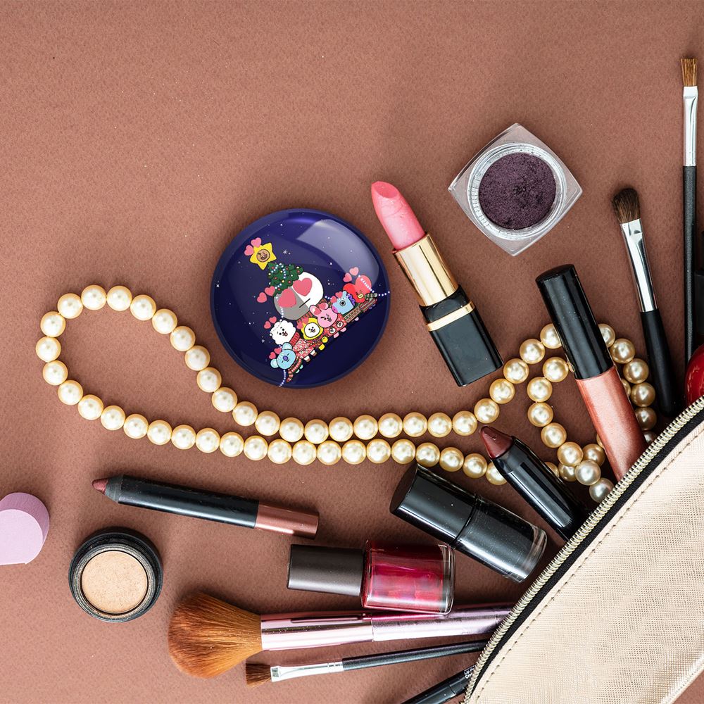 آینه های جیبی BT21 خندالو دایره ای به قطر 7.5 سانتی متر می باشد که نه خیلی بزرگ و غیر قابل استفاده در کیف آرایشی ست و نه خیلی کوچک که تصویر خاصی در آن مشاهده نشود. سایزی استاندارد و کارآمد دارد و مناسب قرار گیری در کیف لوازم آرایش و کیف های کوچک دستی نیز هست.