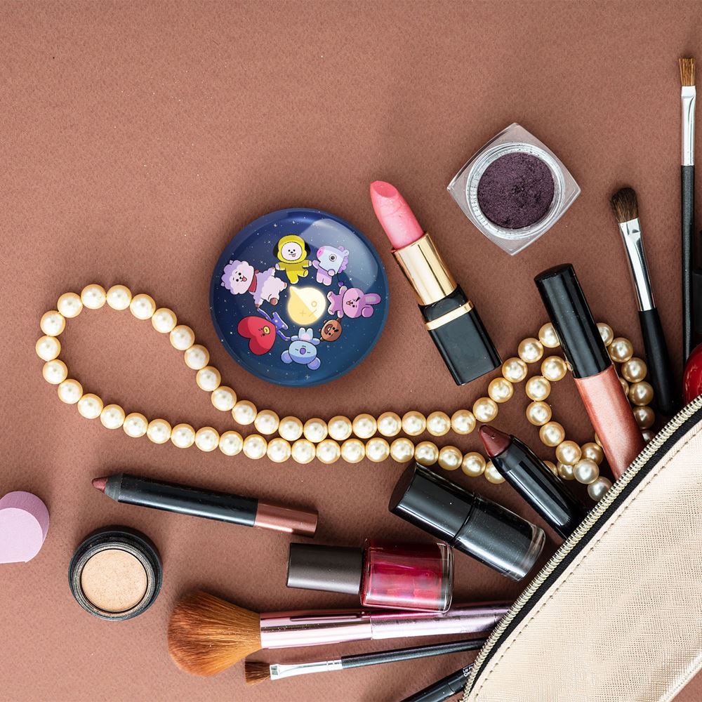 آینه های جیبی BT21 خندالو دایره ای به قطر 7.5 سانتی متر می باشد که نه خیلی بزرگ و غیر قابل استفاده در کیف آرایشی ست و نه خیلی کوچک که تصویر خاصی در آن مشاهده نشود. سایزی استاندارد و کارآمد دارد و مناسب قرار گیری در کیف لوازم آرایش و کیف های کوچک دستی نیز هست.