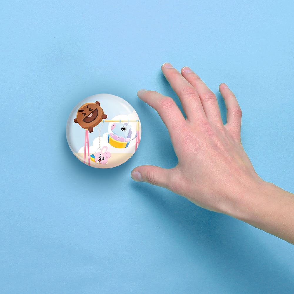 آینه های جیبی BT21 خندالو دایره ای به قطر 7.5 سانتی متر می باشد که نه خیلی بزرگ و غیر قابل استفاده در کیف آرایشی ست و نه خیلی کوچک که تصویر خاصی در آن مشاهده نشود. سایزی استاندارد و کارآمد دارد و مناسب قرار گیری در کیف لوازم آرایش و کیف های کوچک دستی نیز هست.