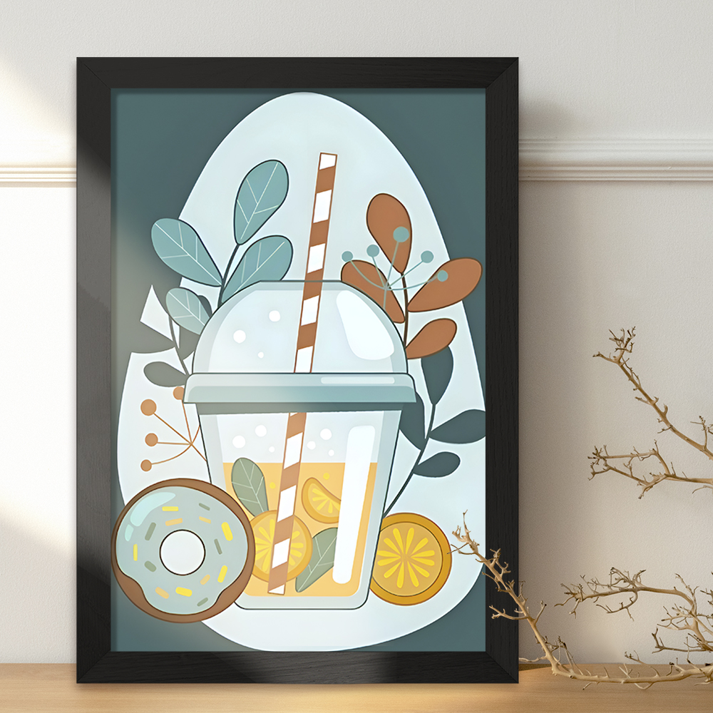 تابلو یا قاب عکس آبمیوه خندالو در ابعاد مختلف با استفاده از بهترین برند پروفیل پی وی سی دو سانتی متری بسیار مرغوب، تولید شده اند و در مونتاژ و نصب آنها نهایت دقت در قرارگیری هر چه دقیق تر لبه ها به یکدیگر صورت گرفته است. همچنین در پشت قاب ها گیره ای برای اتصال راحت به دیوار تعبیه شده است. چاپ طرح تابلوی آبمیوه با بالاترین کیفیت بوسیله چاپگرهای دیجیتال شش رنگ و کاغذ با کیفیت عکاسی انجام شده و بر روی آن شیشه ای با کیفیت و شفاف در سطح قاب قرار گرفته که از کاغذ عکس محافظت میکند. بسته بندی تابلوها جعبه های مقاوم و محکمی بوده که علاوه بر محافظتی که از بدنه قاب می کند، ظاهر جذابی دارد و تابلوی آبمیوه را بدل به محصولی مناسب هدیه کرده است. تابلوهای خندالو با تنوع طرحی بسیار بالا شامل تابلو های دکوراتیو قابل استفاده در اتاق کودک، محل کار و منازل می باشد که سلیقه هر مخاطبی را پوشش می دهد، ضمن اینکه امکان تعویض عکس موجود در قاب وجود داشته و می توان عکس های خانوادگی و … را نیز در آن قرار داد.