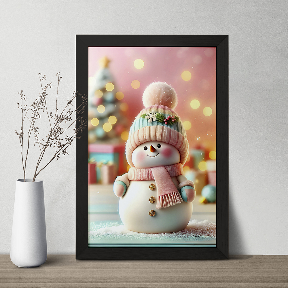 تابلو یا قاب عکس آدم برفی کیوت خندالو در ابعاد مختلف با استفاده از بهترین برند پروفیل پی وی سی دو سانتی متری بسیار مرغوب، تولید شده اند و در مونتاژ و نصب آنها نهایت دقت در قرارگیری هر چه دقیق تر لبه ها به یکدیگر صورت گرفته است. همچنین در پشت قاب ها گیره ای برای اتصال راحت به دیوار تعبیه شده است.