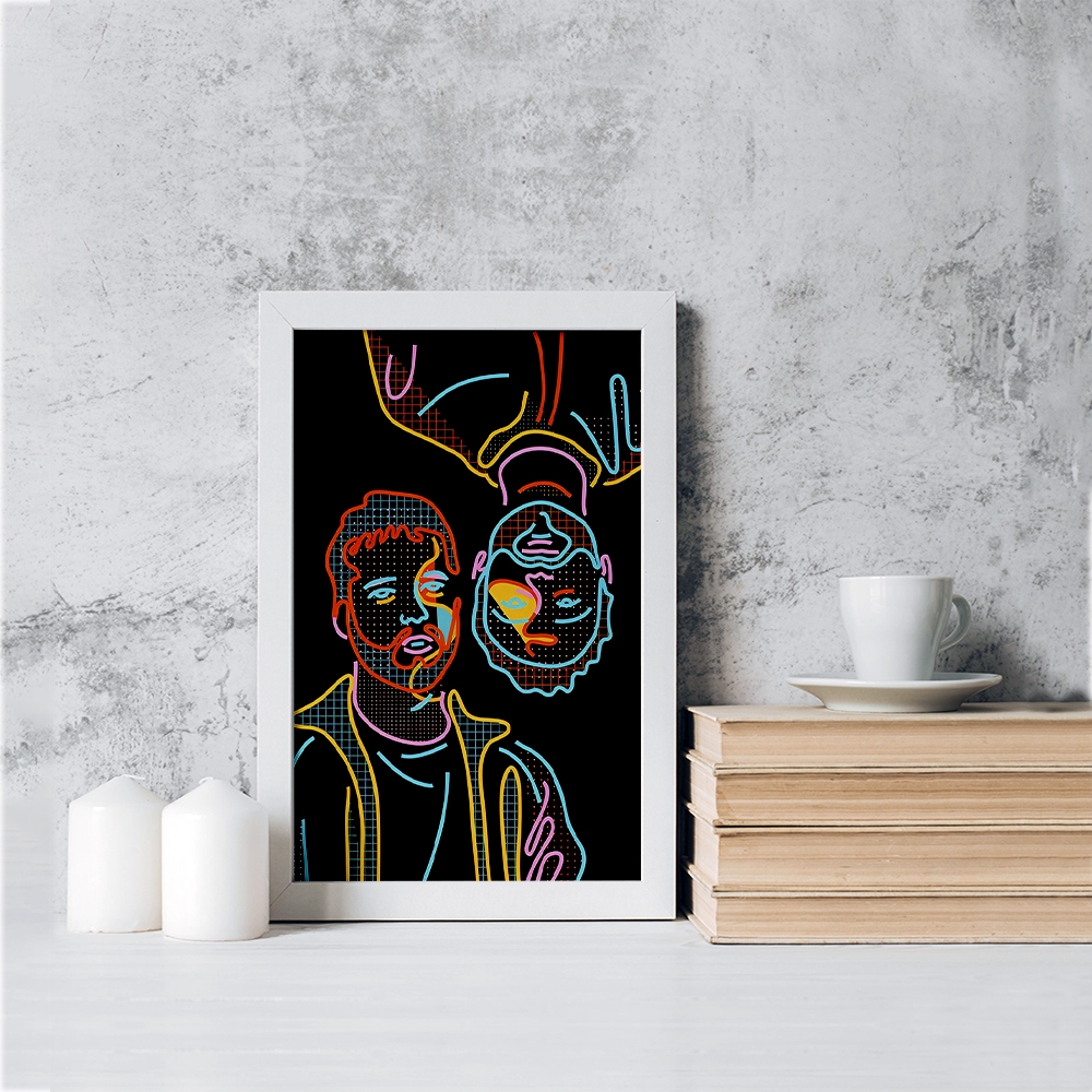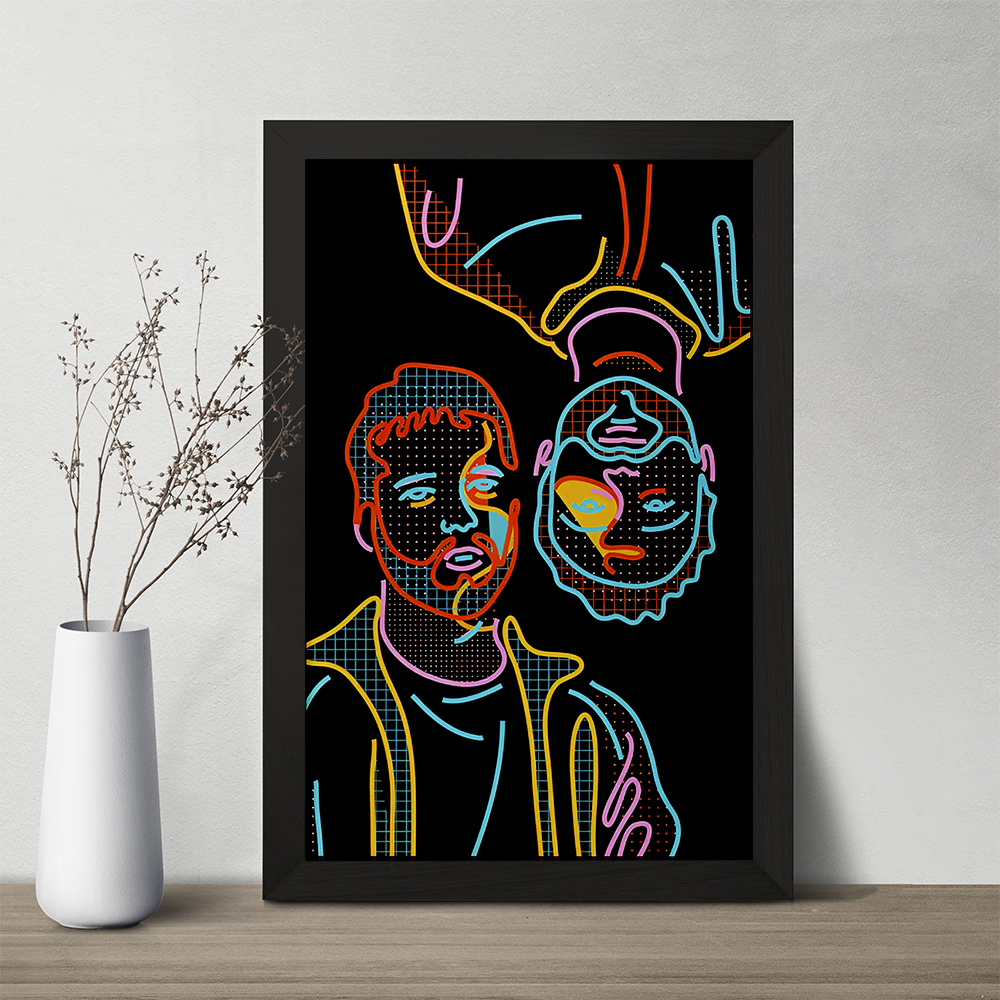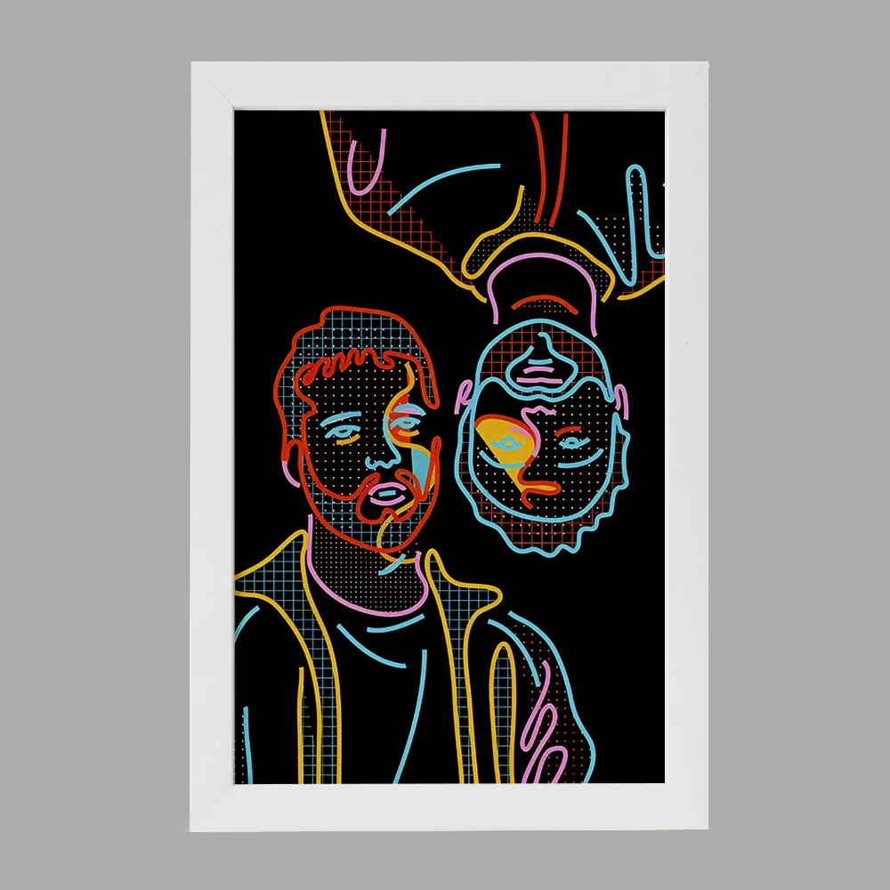 تابلو یا قاب عکس آدم های نئونی خندالو در ابعاد مختلف با استفاده از بهترین برند پروفیل پی وی سی دو سانتی متری بسیار مرغوب، تولید شده اند و در مونتاژ و نصب آنها نهایت دقت در قرارگیری هر چه دقیق تر لبه ها به یکدیگر صورت گرفته است. همچنین در پشت قاب ها گیره ای برای اتصال راحت به دیوار تعبیه شده است. چاپ طرح تابلوی آدم های نئونی با بالاترین کیفیت بوسیله چاپگرهای دیجیتال شش رنگ و کاغذ با کیفیت عکاسی انجام شده و بر روی آن شیشه ای با کیفیت و شفاف در سطح قاب قرار گرفته که از کاغذ عکس محافظت میکند. بسته بندی تابلوها جعبه های مقاوم و محکمی بوده که علاوه بر محافظتی که از بدنه قاب می کند، ظاهر جذابی دارد و تابلوی آدم های نئونی را بدل به محصولی مناسب هدیه کرده است. تابلوهای خندالو با تنوع طرحی بسیار بالا شامل تابلو های دکوراتیو قابل استفاده در اتاق کودک، محل کار و منازل می باشد که سلیقه هر مخاطبی را پوشش می دهد، ضمن اینکه امکان تعویض عکس موجود در قاب وجود داشته و می توان عکس های خانوادگی و … را نیز در آن قرار داد.