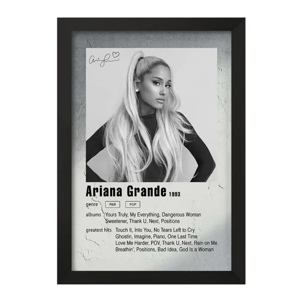 تابلو یا قاب عکس آریانا گرانده (Ariana Grande) خندالو در ابعاد مختلف با استفاده از بهترین برند پروفیل پی وی سی دو سانتی متری بسیار مرغوب، تولید شده اند و در مونتاژ و نصب آنها نهایت دقت در قرارگیری هر چه دقیق تر لبه ها به یکدیگر صورت گرفته است. همچنین در پشت قاب ها گیره ای برای اتصال راحت به دیوار تعبیه شده است. چاپ طرح تابلوی آریانا گرانده (Ariana Grande) با بالاترین کیفیت بوسیله چاپگرهای دیجیتال شش رنگ و کاغذ با کیفیت عکاسی انجام شده و بر روی آن شیشه ای با کیفیت و شفاف در سطح قاب قرار گرفته که از کاغذ عکس محافظت میکند. بسته بندی تابلوها جعبه های مقاوم و محکمی بوده که علاوه بر محافظتی که از بدنه قاب می کند، ظاهر جذابی دارد و تابلوی آریانا گرانده (Ariana Grande) را بدل به محصولی مناسب هدیه کرده است. تابلوهای خندالو با تنوع طرحی بسیار بالا شامل تابلو های دکوراتیو قابل استفاده در اتاق کودک، محل کار و منازل می باشد که سلیقه هر مخاطبی را پوشش می دهد، ضمن اینکه امکان تعویض عکس موجود در قاب وجود داشته و می توان عکس های خانوادگی و … را نیز در آن قرار داد.