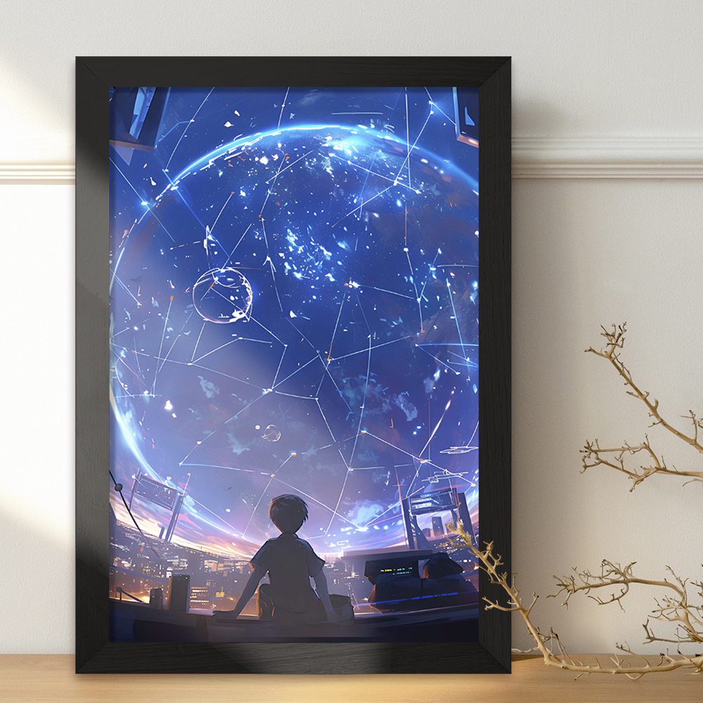تابلو یا قاب عکس آسمان شب خندالو در ابعاد مختلف با استفاده از بهترین برند پروفیل پی وی سی دو سانتی متری بسیار مرغوب، تولید شده اند و در مونتاژ و نصب آنها نهایت دقت در قرارگیری هر چه دقیق تر لبه ها به یکدیگر صورت گرفته است. همچنین در پشت قاب ها گیره ای برای اتصال راحت به دیوار تعبیه شده است. چاپ طرح تابلوی آسمان شب با بالاترین کیفیت بوسیله چاپگرهای دیجیتال شش رنگ و کاغذ با کیفیت عکاسی انجام شده و بر روی آن شیشه ای با کیفیت و شفاف در سطح قاب قرار گرفته که از کاغذ عکس محافظت میکند. بسته بندی تابلوها جعبه های مقاوم و محکمی بوده که علاوه بر محافظتی که از بدنه قاب می کند، ظاهر جذابی دارد و تابلوی آسمان شب را بدل به محصولی مناسب هدیه کرده است. تابلوهای خندالو با تنوع طرحی بسیار بالا شامل تابلو های دکوراتیو قابل استفاده در اتاق کودک، محل کار و منازل می باشد که سلیقه هر مخاطبی را پوشش می دهد، ضمن اینکه امکان تعویض عکس موجود در قاب وجود داشته و می توان عکس های خانوادگی و … را نیز در آن قرار داد.