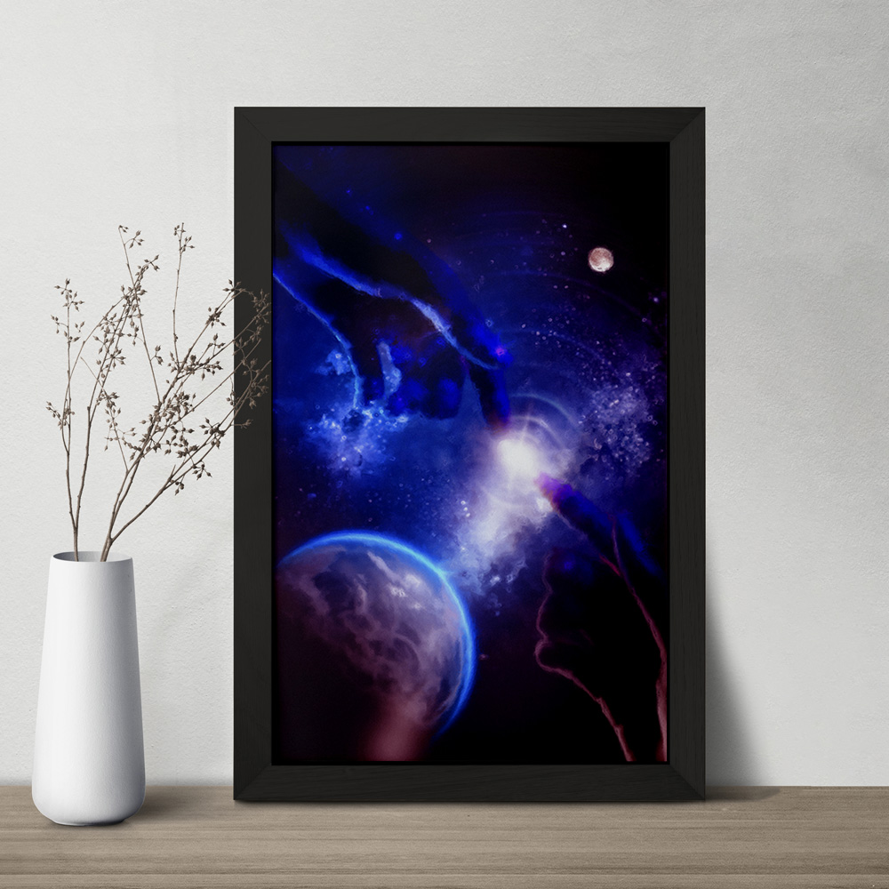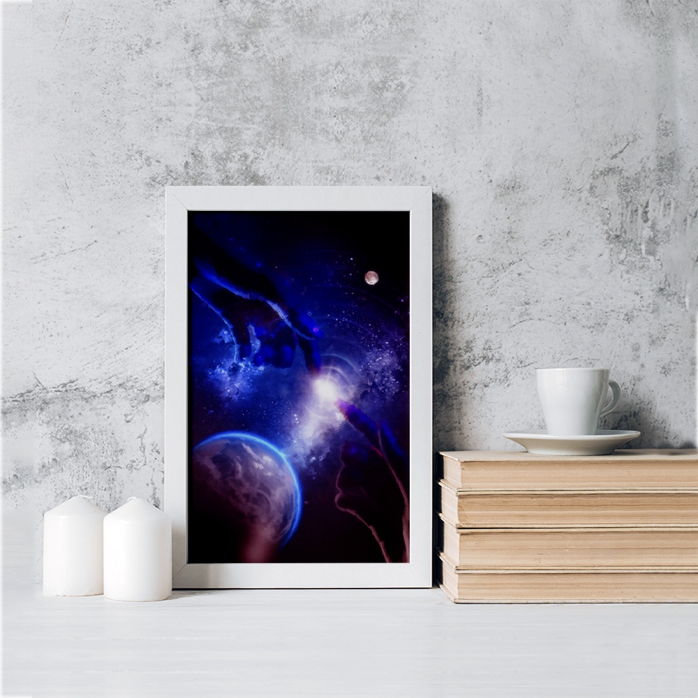 تابلو یا قاب عکس آفرینش کهکشان خندالو در ابعاد مختلف با استفاده از بهترین برند پروفیل پی وی سی دو سانتی متری بسیار مرغوب، تولید شده اند و در مونتاژ و نصب آنها نهایت دقت در قرارگیری هر چه دقیق تر لبه ها به یکدیگر صورت گرفته است. همچنین در پشت قاب ها گیره ای برای اتصال راحت به دیوار تعبیه شده است.