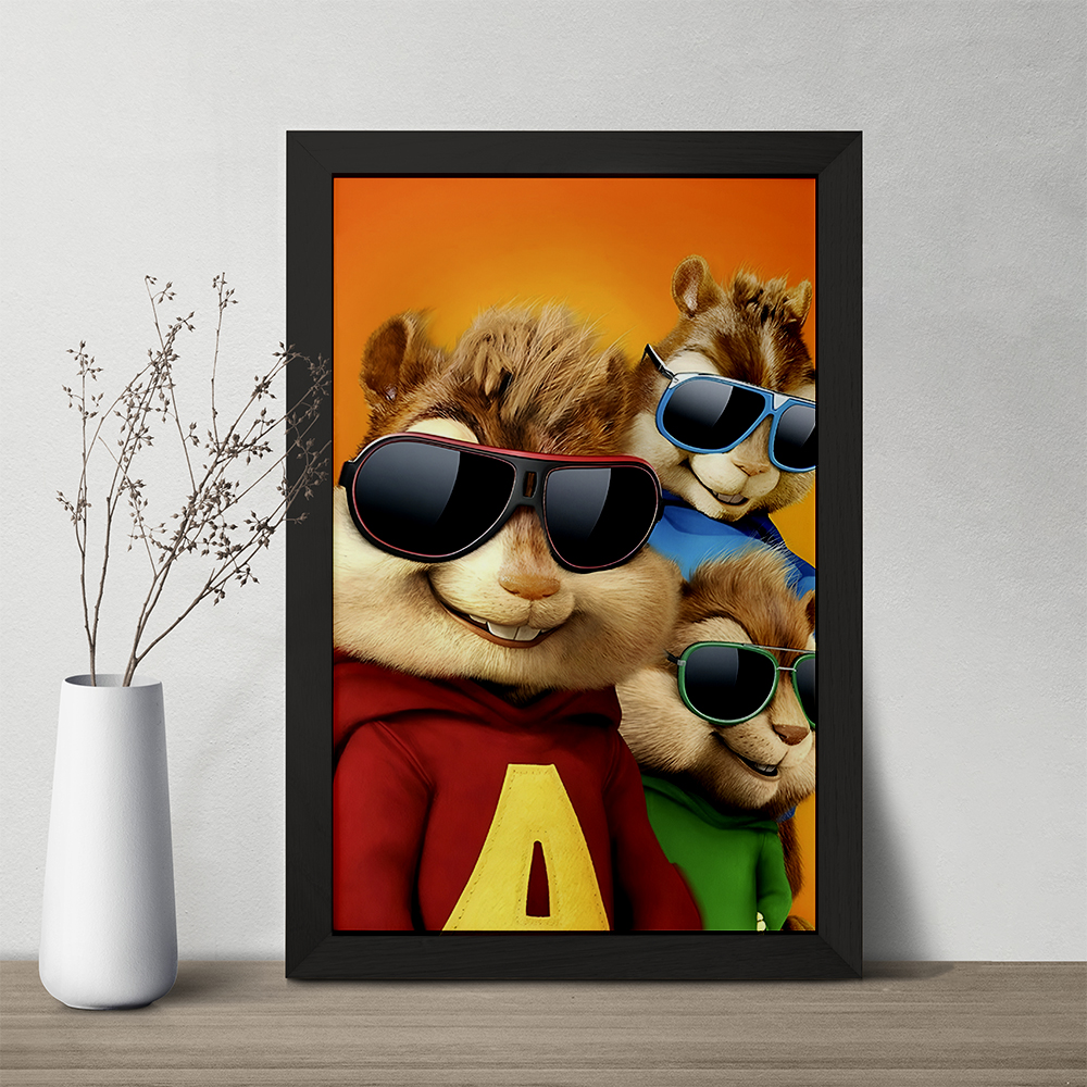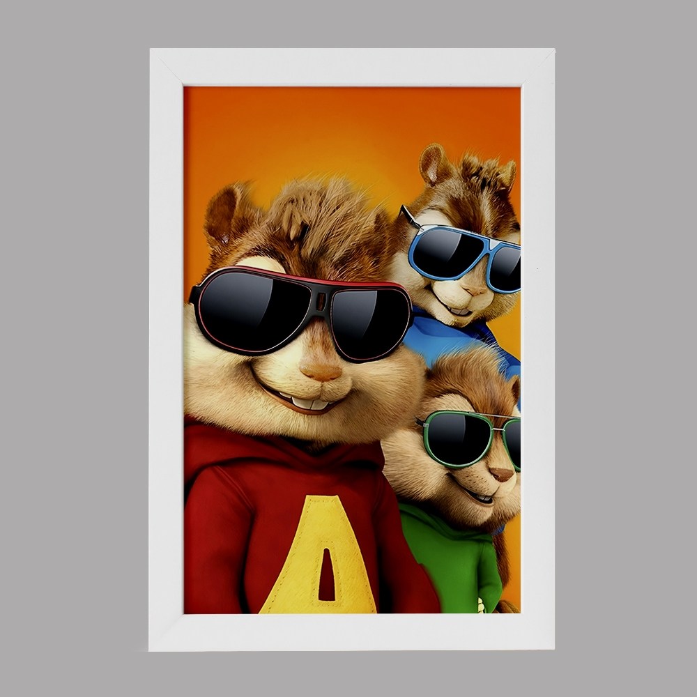 تابلو یا قاب عکس آلوین و سنجاب ها خندالو در ابعاد مختلف با استفاده از بهترین برند پروفیل پی وی سی دو سانتی متری بسیار مرغوب، تولید شده اند و در مونتاژ و نصب آنها نهایت دقت در قرارگیری هر چه دقیق تر لبه ها به یکدیگر صورت گرفته است. همچنین در پشت قاب ها گیره ای برای اتصال راحت به دیوار تعبیه شده است. چاپ طرح تابلوی آلوین و سنجاب ها با بالاترین کیفیت بوسیله چاپگرهای دیجیتال شش رنگ و کاغذ با کیفیت عکاسی انجام شده و بر روی آن شیشه ای با کیفیت و شفاف در سطح قاب قرار گرفته که از کاغذ عکس محافظت میکند. بسته بندی تابلوها جعبه های مقاوم و محکمی بوده که علاوه بر محافظتی که از بدنه قاب می کند، ظاهر جذابی دارد و تابلوی آلوین و سنجاب ها را بدل به محصولی مناسب هدیه کرده است. تابلوهای خندالو با تنوع طرحی بسیار بالا شامل تابلو های دکوراتیو قابل استفاده در اتاق کودک، محل کار و منازل می باشد که سلیقه هر مخاطبی را پوشش می دهد، ضمن اینکه امکان تعویض عکس موجود در قاب وجود داشته و می توان عکس های خانوادگی و … را نیز در آن قرار داد.