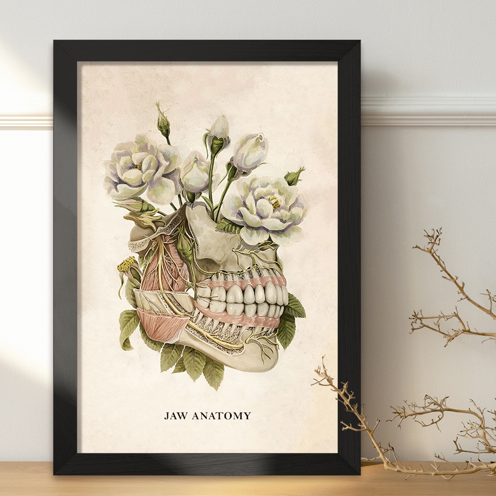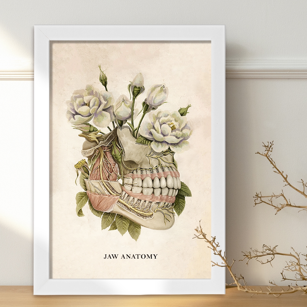 تابلو یا قاب عکس آناتومی فک (Jaw Anatomy) خندالو در ابعاد مختلف با استفاده از بهترین برند پروفیل پی وی سی دو سانتی متری بسیار مرغوب، تولید شده اند و در مونتاژ و نصب آنها نهایت دقت در قرارگیری هر چه دقیق تر لبه ها به یکدیگر صورت گرفته است. همچنین در پشت قاب ها گیره ای برای اتصال راحت به دیوار تعبیه شده است.