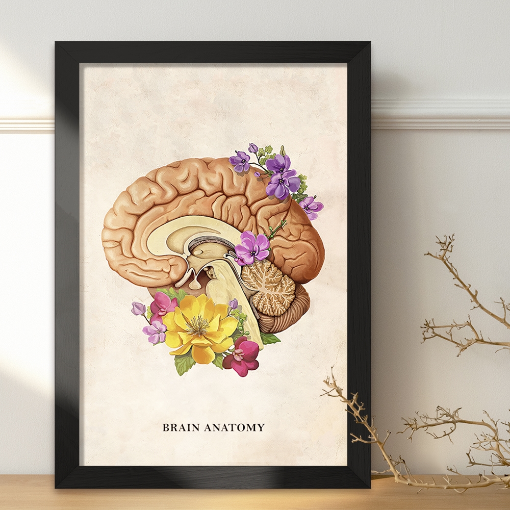 تابلو یا قاب عکس آناتومی مغز (Brain Anatomy) خندالو در ابعاد مختلف با استفاده از بهترین برند پروفیل پی وی سی دو سانتی متری بسیار مرغوب، تولید شده اند و در مونتاژ و نصب آنها نهایت دقت در قرارگیری هر چه دقیق تر لبه ها به یکدیگر صورت گرفته است. همچنین در پشت قاب ها گیره ای برای اتصال راحت به دیوار تعبیه شده است.