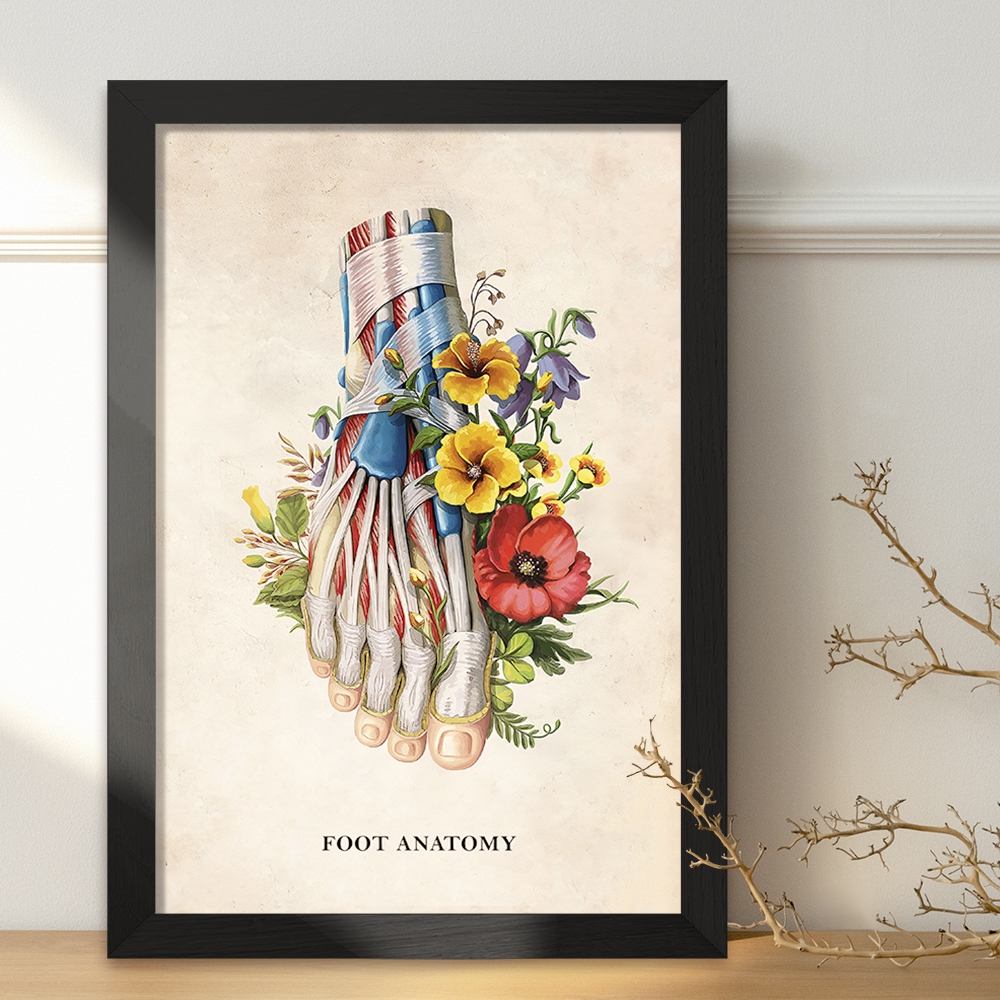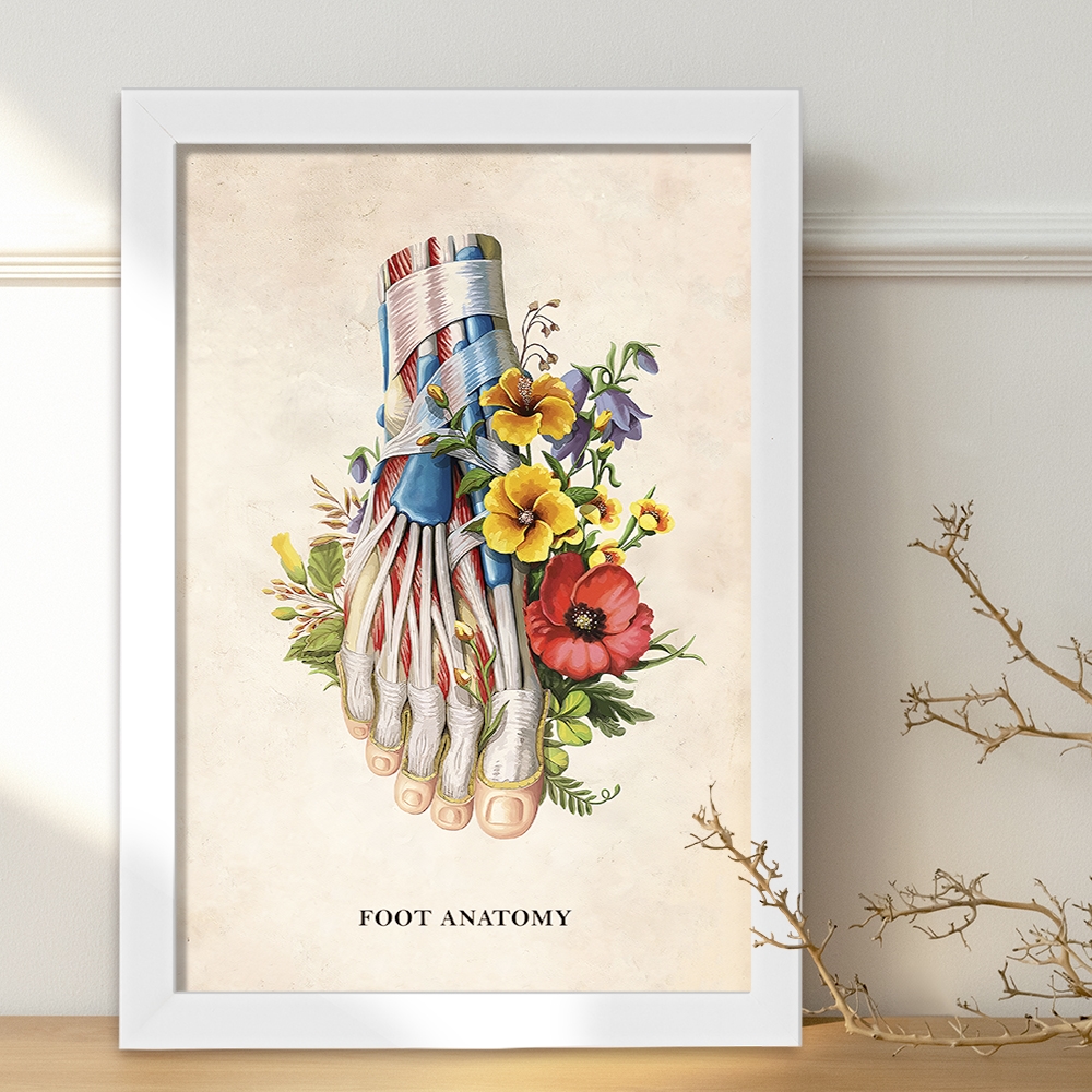 تابلو یا قاب عکس آناتومی پا (Foot Anatomy) خندالو در ابعاد مختلف با استفاده از بهترین برند پروفیل پی وی سی دو سانتی متری بسیار مرغوب، تولید شده اند و در مونتاژ و نصب آنها نهایت دقت در قرارگیری هر چه دقیق تر لبه ها به یکدیگر صورت گرفته است. همچنین در پشت قاب ها گیره ای برای اتصال راحت به دیوار تعبیه شده است.