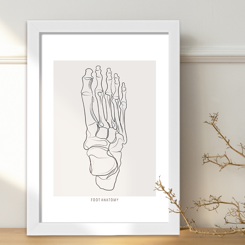 تابلو یا قاب عکس آناتومی پا (Foot Anatomy) خندالو در ابعاد مختلف با استفاده از بهترین برند پروفیل پی وی سی دو سانتی متری بسیار مرغوب، تولید شده اند و در مونتاژ و نصب آنها نهایت دقت در قرارگیری هر چه دقیق تر لبه ها به یکدیگر صورت گرفته است. همچنین در پشت قاب ها گیره ای برای اتصال راحت به دیوار تعبیه شده است.