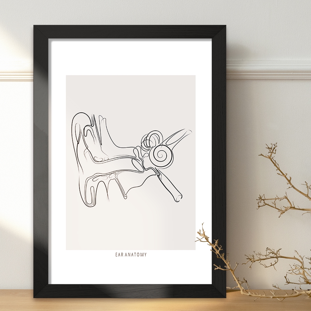 تابلو یا قاب عکس آناتومی گوش (Ear Anatomy) خندالو در ابعاد مختلف با استفاده از بهترین برند پروفیل پی وی سی دو سانتی متری بسیار مرغوب، تولید شده اند و در مونتاژ و نصب آنها نهایت دقت در قرارگیری هر چه دقیق تر لبه ها به یکدیگر صورت گرفته است. همچنین در پشت قاب ها گیره ای برای اتصال راحت به دیوار تعبیه شده است.