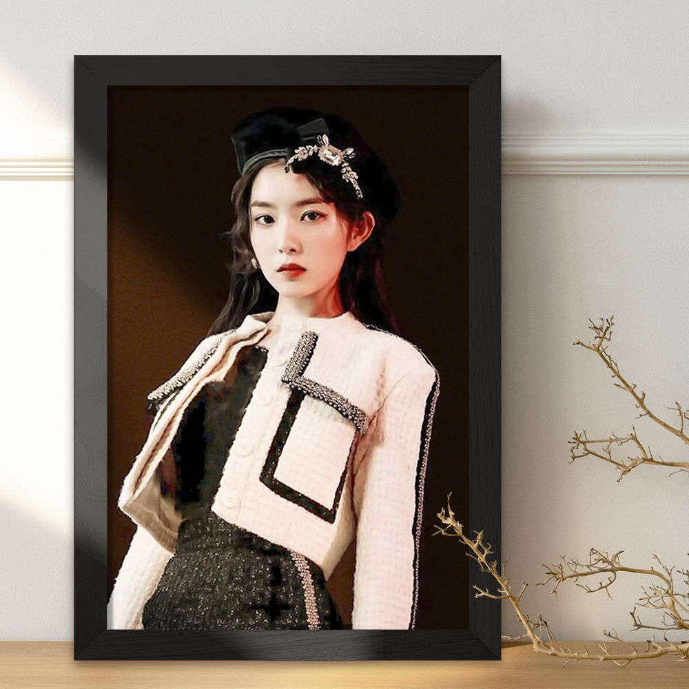 تابلو یا قاب عکس آیرین گروه رد ولوت Red Velvet خندالو در ابعاد مختلف با استفاده از بهترین برند پروفیل پی وی سی دو سانتی متری بسیار مرغوب، تولید شده اند و در مونتاژ و نصب آنها نهایت دقت در قرارگیری هر چه دقیق تر لبه ها به یکدیگر صورت گرفته است. همچنین در پشت قاب ها گیره ای برای اتصال راحت به دیوار تعبیه شده است.