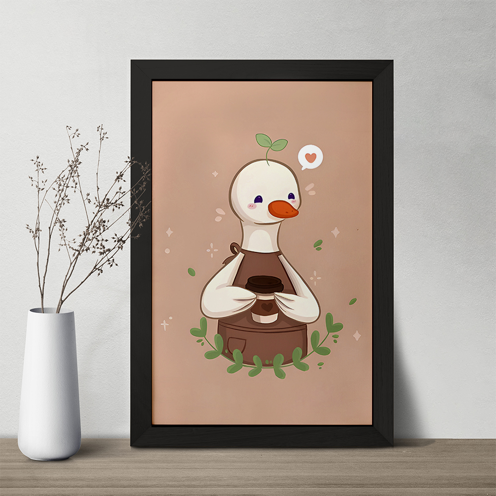 تابلو یا قاب عکس اردک باریستا خندالو در ابعاد مختلف با استفاده از بهترین برند پروفیل پی وی سی دو سانتی متری بسیار مرغوب، تولید شده اند و در مونتاژ و نصب آنها نهایت دقت در قرارگیری هر چه دقیق تر لبه ها به یکدیگر صورت گرفته است. همچنین در پشت قاب ها گیره ای برای اتصال راحت به دیوار تعبیه شده است. چاپ طرح تابلوی اردک باریستا با بالاترین کیفیت بوسیله چاپگرهای دیجیتال شش رنگ و کاغذ با کیفیت عکاسی انجام شده و بر روی آن شیشه ای با کیفیت و شفاف در سطح قاب قرار گرفته که از کاغذ عکس محافظت میکند. بسته بندی تابلوها جعبه های مقاوم و محکمی بوده که علاوه بر محافظتی که از بدنه قاب می کند، ظاهر جذابی دارد و تابلوی اردک باریستا را بدل به محصولی مناسب هدیه کرده است. تابلوهای خندالو با تنوع طرحی بسیار بالا شامل تابلو های دکوراتیو قابل استفاده در اتاق کودک، محل کار و منازل می باشد که سلیقه هر مخاطبی را پوشش می دهد، ضمن اینکه امکان تعویض عکس موجود در قاب وجود داشته و می توان عکس های خانوادگی و … را نیز در آن قرار داد.