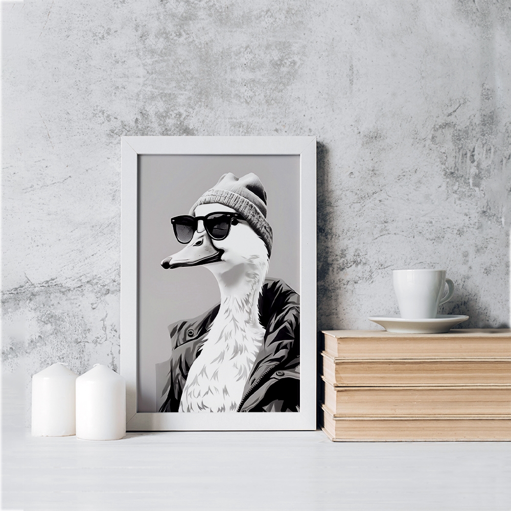 تابلو یا قاب عکس اردک بامزه خندالو در ابعاد مختلف با استفاده از بهترین برند پروفیل پی وی سی دو سانتی متری بسیار مرغوب، تولید شده اند و در مونتاژ و نصب آنها نهایت دقت در قرارگیری هر چه دقیق تر لبه ها به یکدیگر صورت گرفته است. همچنین در پشت قاب ها گیره ای برای اتصال راحت به دیوار تعبیه شده است.