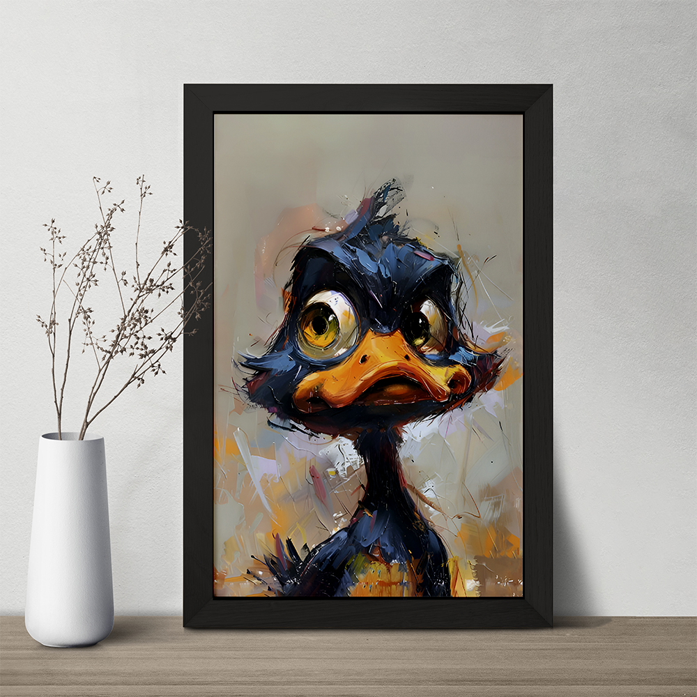 تابلو یا قاب عکس اردک سیاه خندالو در ابعاد مختلف با استفاده از بهترین برند پروفیل پی وی سی دو سانتی متری بسیار مرغوب، تولید شده اند و در مونتاژ و نصب آنها نهایت دقت در قرارگیری هر چه دقیق تر لبه ها به یکدیگر صورت گرفته است. همچنین در پشت قاب ها گیره ای برای اتصال راحت به دیوار تعبیه شده است. چاپ طرح تابلوی اردک سیاه با بالاترین کیفیت بوسیله چاپگرهای دیجیتال شش رنگ و کاغذ با کیفیت عکاسی انجام شده و بر روی آن شیشه ای با کیفیت و شفاف در سطح قاب قرار گرفته که از کاغذ عکس محافظت میکند. بسته بندی تابلوها جعبه های مقاوم و محکمی بوده که علاوه بر محافظتی که از بدنه قاب می کند، ظاهر جذابی دارد و تابلوی اردک سیاه را بدل به محصولی مناسب هدیه کرده است. تابلوهای خندالو با تنوع طرحی بسیار بالا شامل تابلو های دکوراتیو قابل استفاده در اتاق کودک، محل کار و منازل می باشد که سلیقه هر مخاطبی را پوشش می دهد، ضمن اینکه امکان تعویض عکس موجود در قاب وجود داشته و می توان عکس های خانوادگی و … را نیز در آن قرار داد.