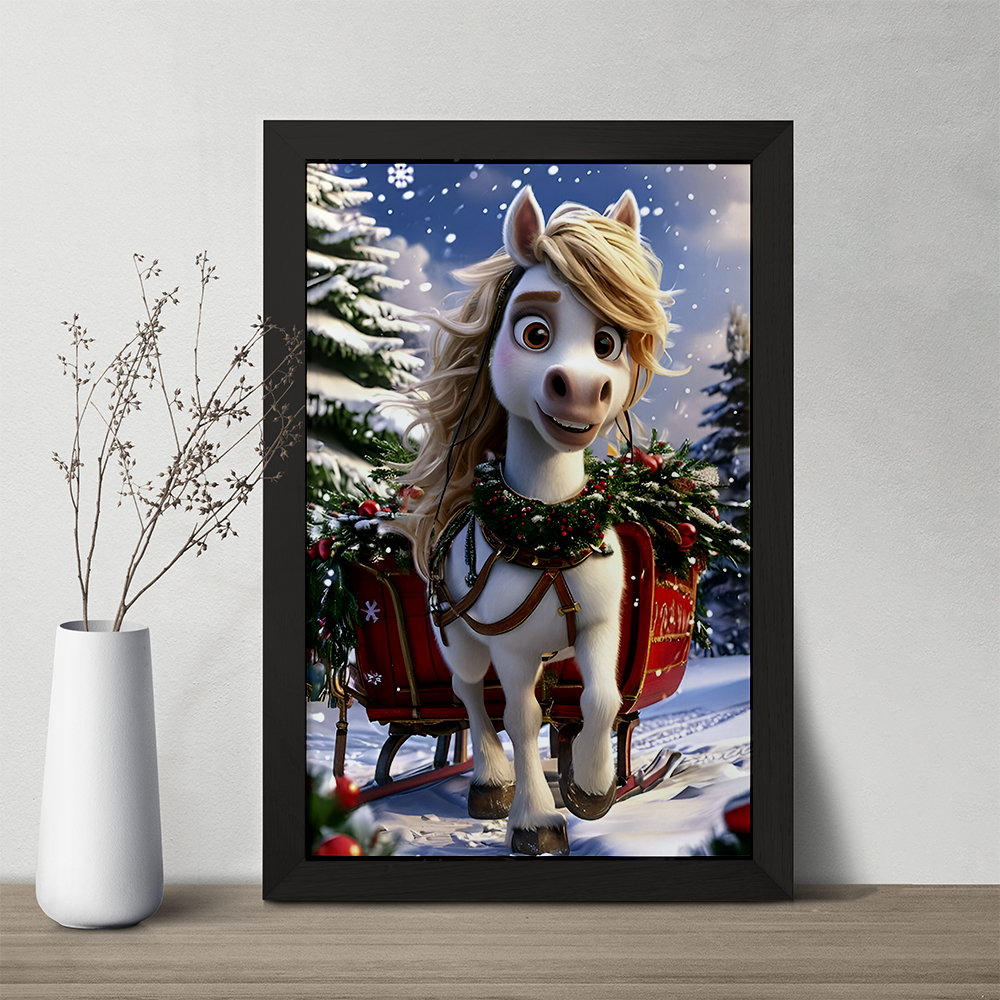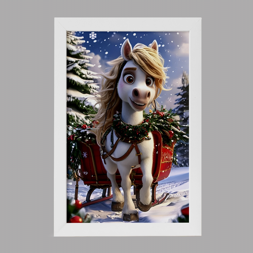 تابلو یا قاب عکس اسب کریسمس خندالو در ابعاد مختلف با استفاده از بهترین برند پروفیل پی وی سی دو سانتی متری بسیار مرغوب، تولید شده اند و در مونتاژ و نصب آنها نهایت دقت در قرارگیری هر چه دقیق تر لبه ها به یکدیگر صورت گرفته است. همچنین در پشت قاب ها گیره ای برای اتصال راحت به دیوار تعبیه شده است. چاپ طرح تابلوی اسب کریسمس با بالاترین کیفیت بوسیله چاپگرهای دیجیتال شش رنگ و کاغذ با کیفیت عکاسی انجام شده و بر روی آن شیشه ای با کیفیت و شفاف در سطح قاب قرار گرفته که از کاغذ عکس محافظت میکند. بسته بندی تابلوها جعبه های مقاوم و محکمی بوده که علاوه بر محافظتی که از بدنه قاب می کند، ظاهر جذابی دارد و تابلوی اسب کریسمس را بدل به محصولی مناسب هدیه کرده است. تابلوهای خندالو با تنوع طرحی بسیار بالا شامل تابلو های دکوراتیو قابل استفاده در اتاق کودک، محل کار و منازل می باشد که سلیقه هر مخاطبی را پوشش می دهد، ضمن اینکه امکان تعویض عکس موجود در قاب وجود داشته و می توان عکس های خانوادگی و … را نیز در آن قرار داد.