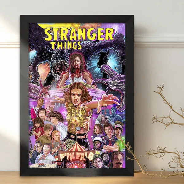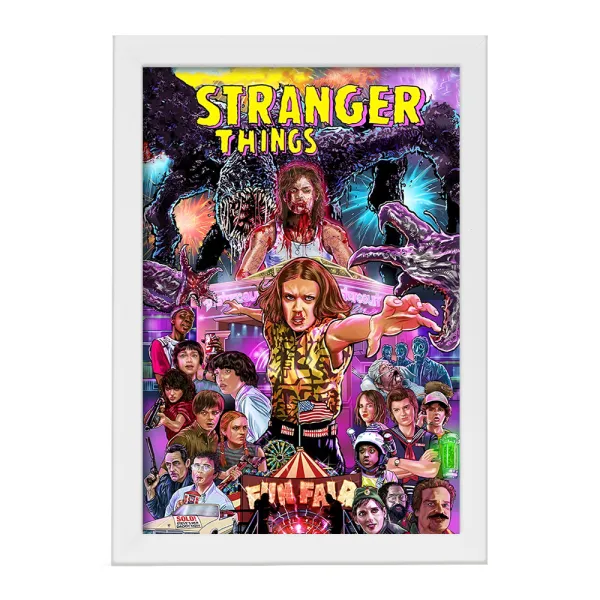تابلو یا قاب عکس استرنجر تینگز (Stranger Things) خندالو در ابعاد مختلف با استفاده از بهترین برند پروفیل پی وی سی دو سانتی متری بسیار مرغوب، تولید شده اند و در مونتاژ و نصب آنها نهایت دقت در قرارگیری هر چه دقیق تر لبه ها به یکدیگر صورت گرفته است. همچنین در پشت قاب ها گیره ای برای اتصال راحت به دیوار تعبیه شده است.